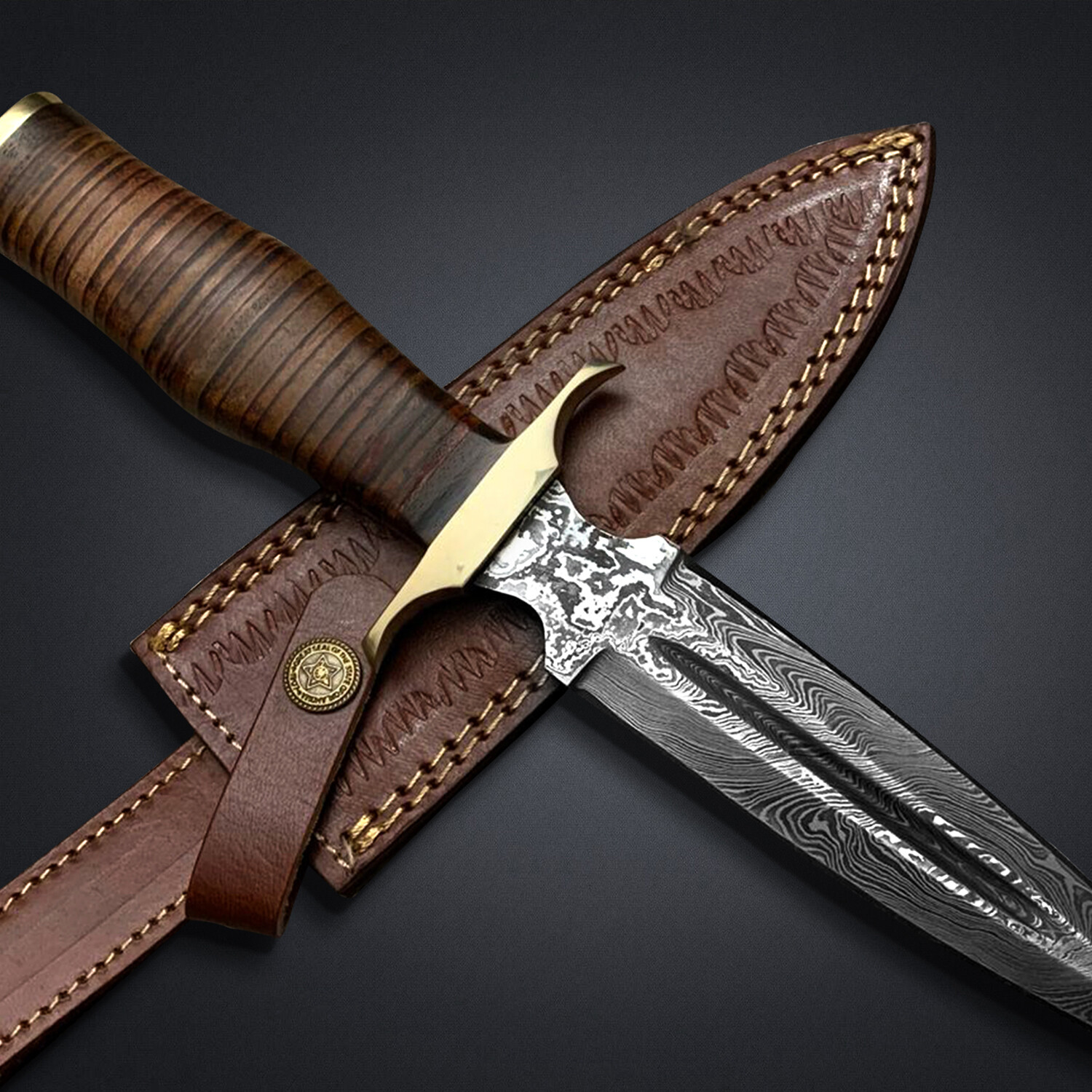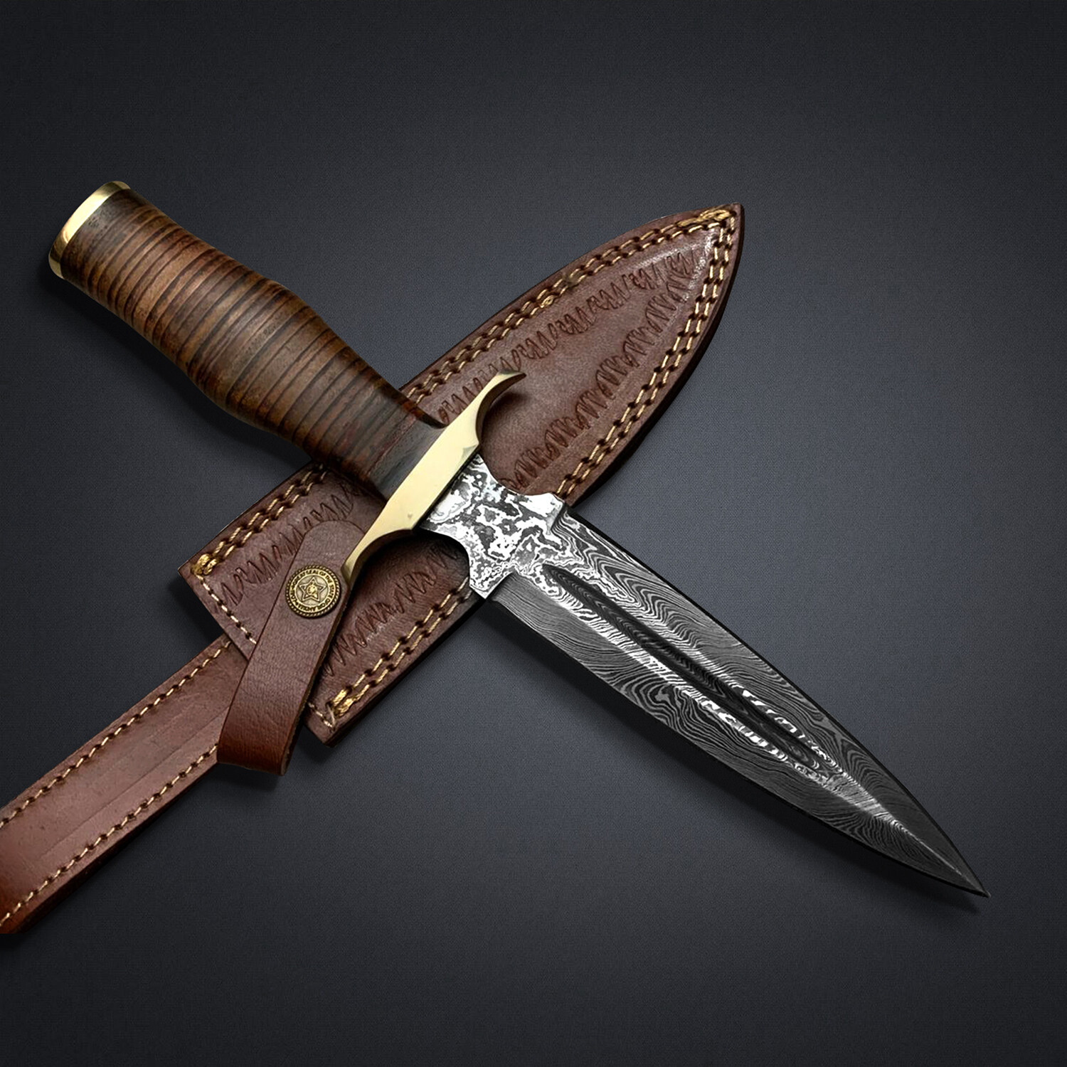 — Handle Material: Stack Leather with Brass Guard