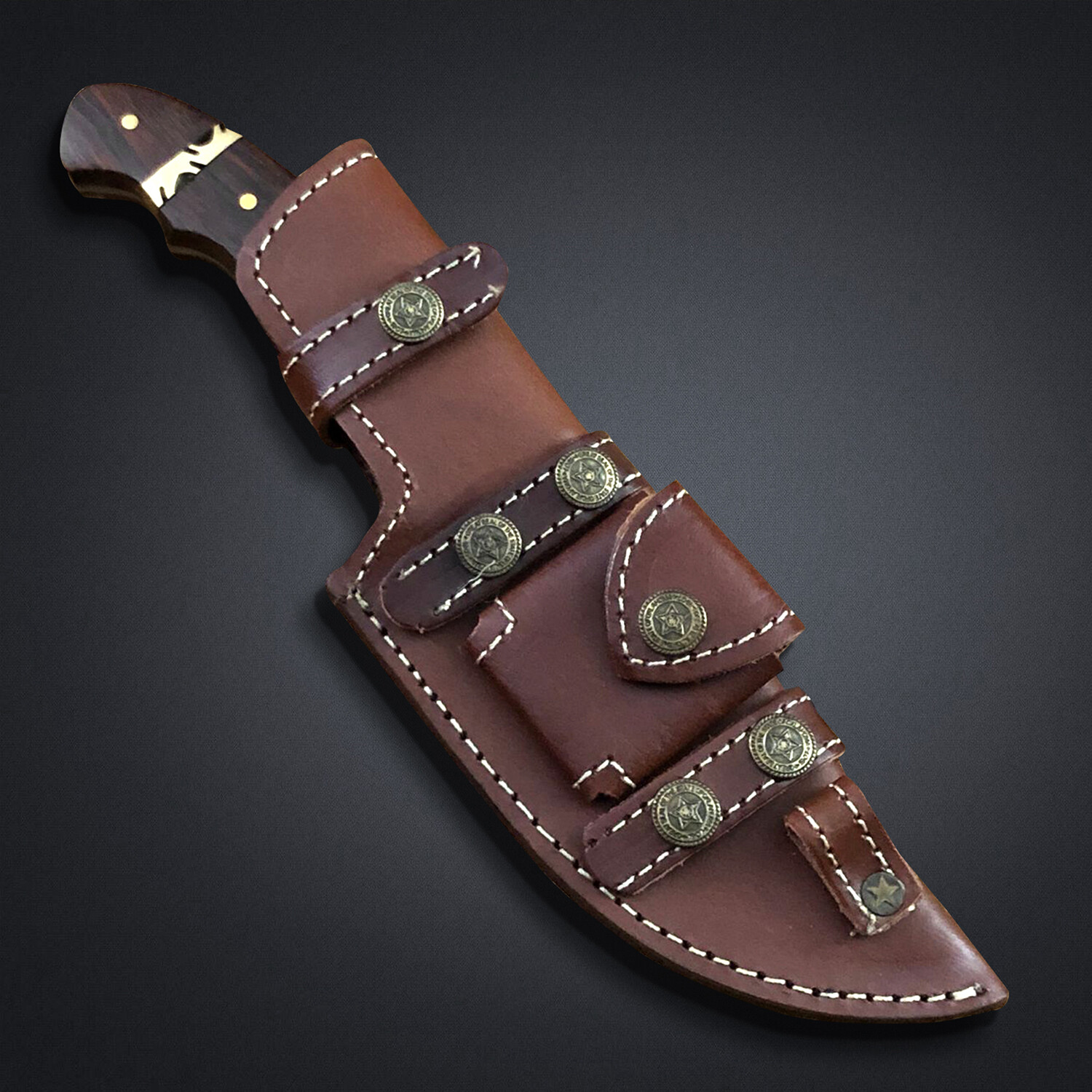 This is your right hand on the hunt, on the job, or on the go. This knife is tough as nails, and gorgeous to boot. The beautiful knife comes with a razor sharp cutting edge and a leather sheath.