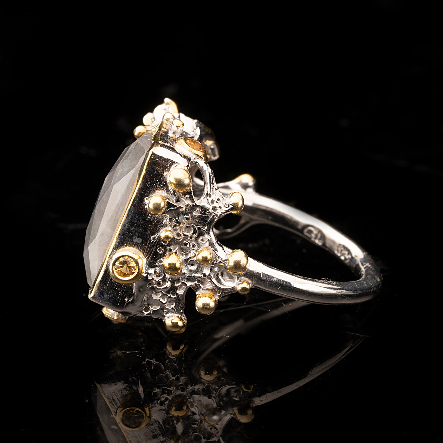 Ammolite, Spectrolite, Peridot, and Citrine Ring // Size 7