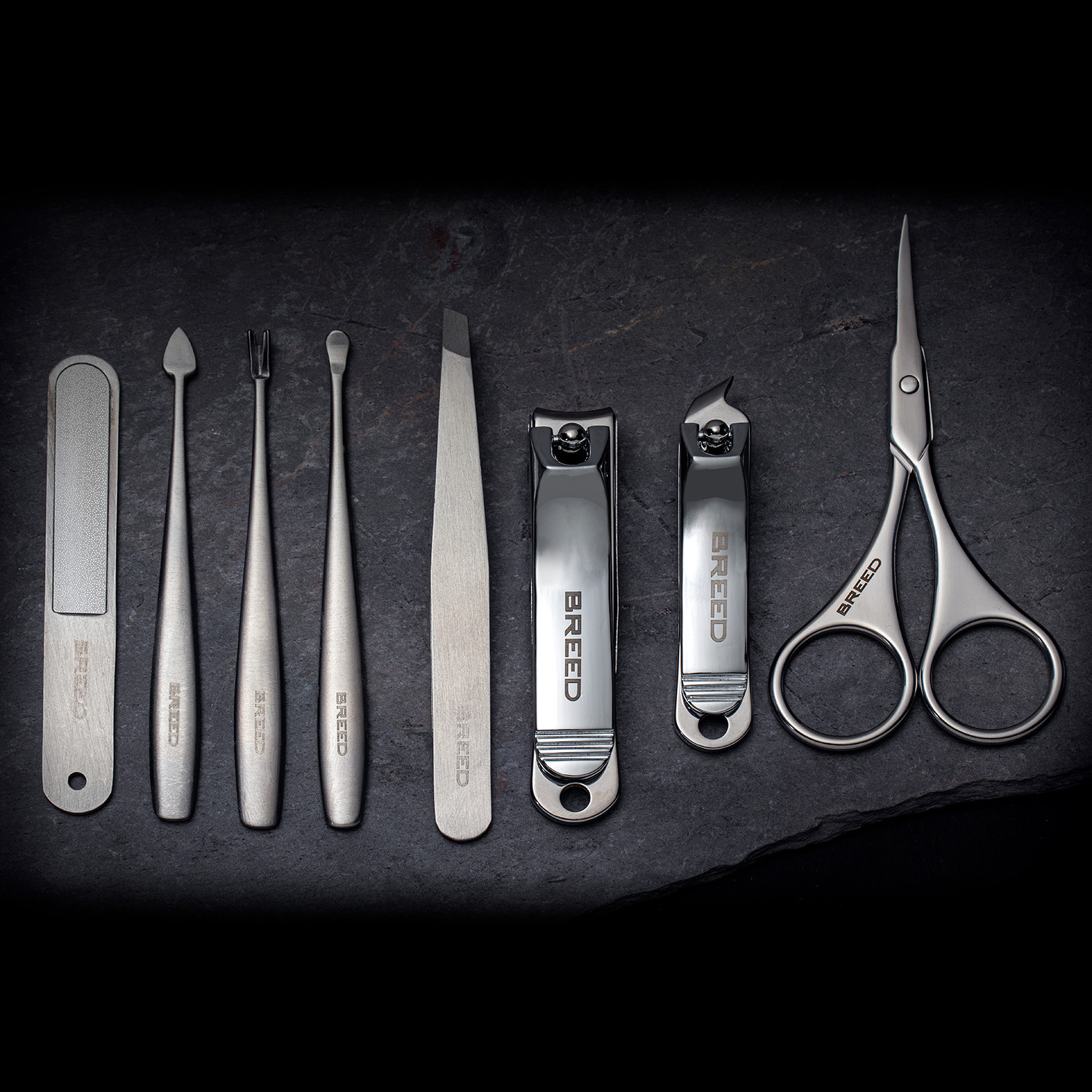 The Katana 8-Piece Grooming Kit includes the tools you need to maintain a well manicured appearance. Made from surgical grade stainless steel, each durable tool is easy to clean and stores neatly in the included leather case so you can bring it with you everywhere.