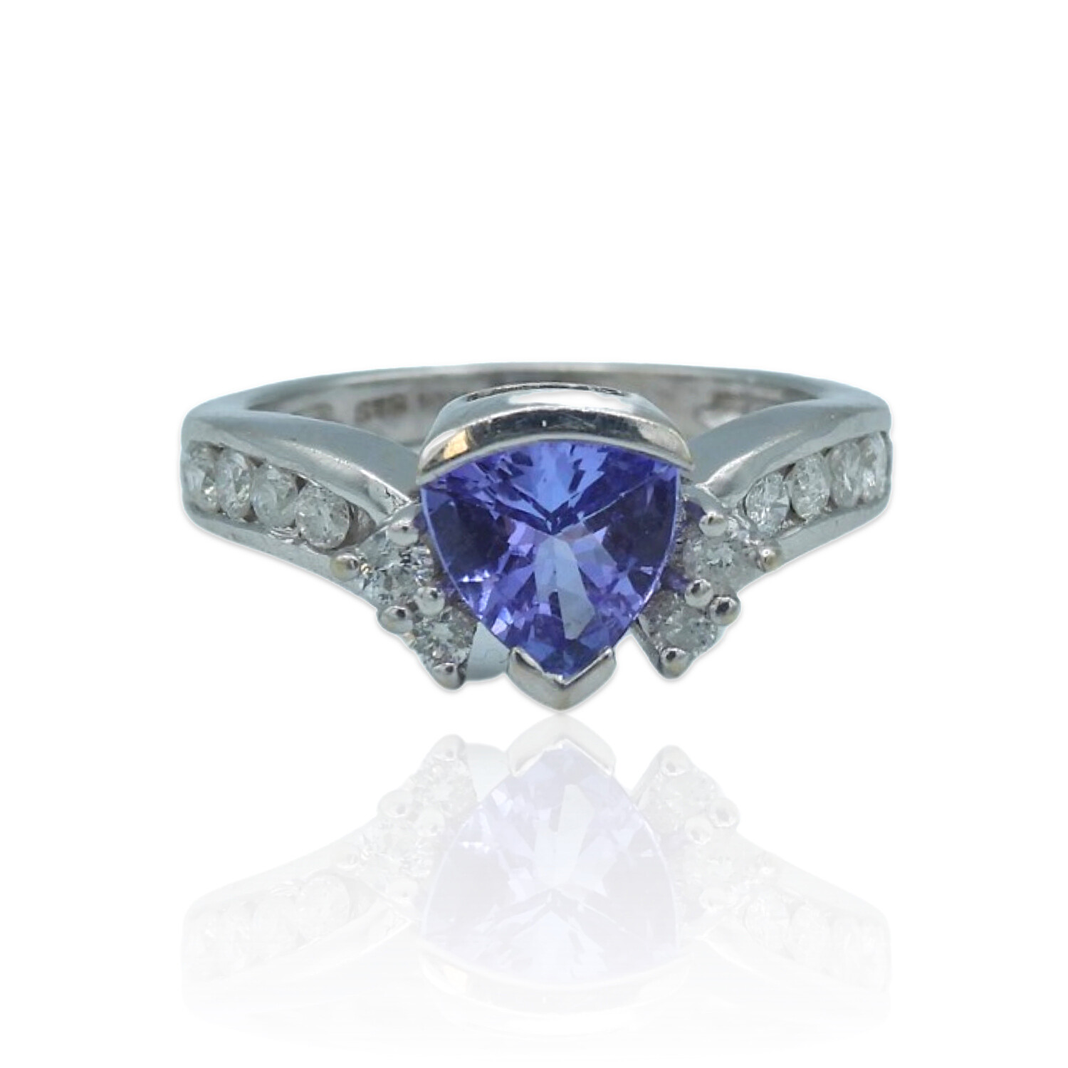 14K White Gold Tanzanite + Diamond Ring // Ring Size: 4 // Pre-Owned