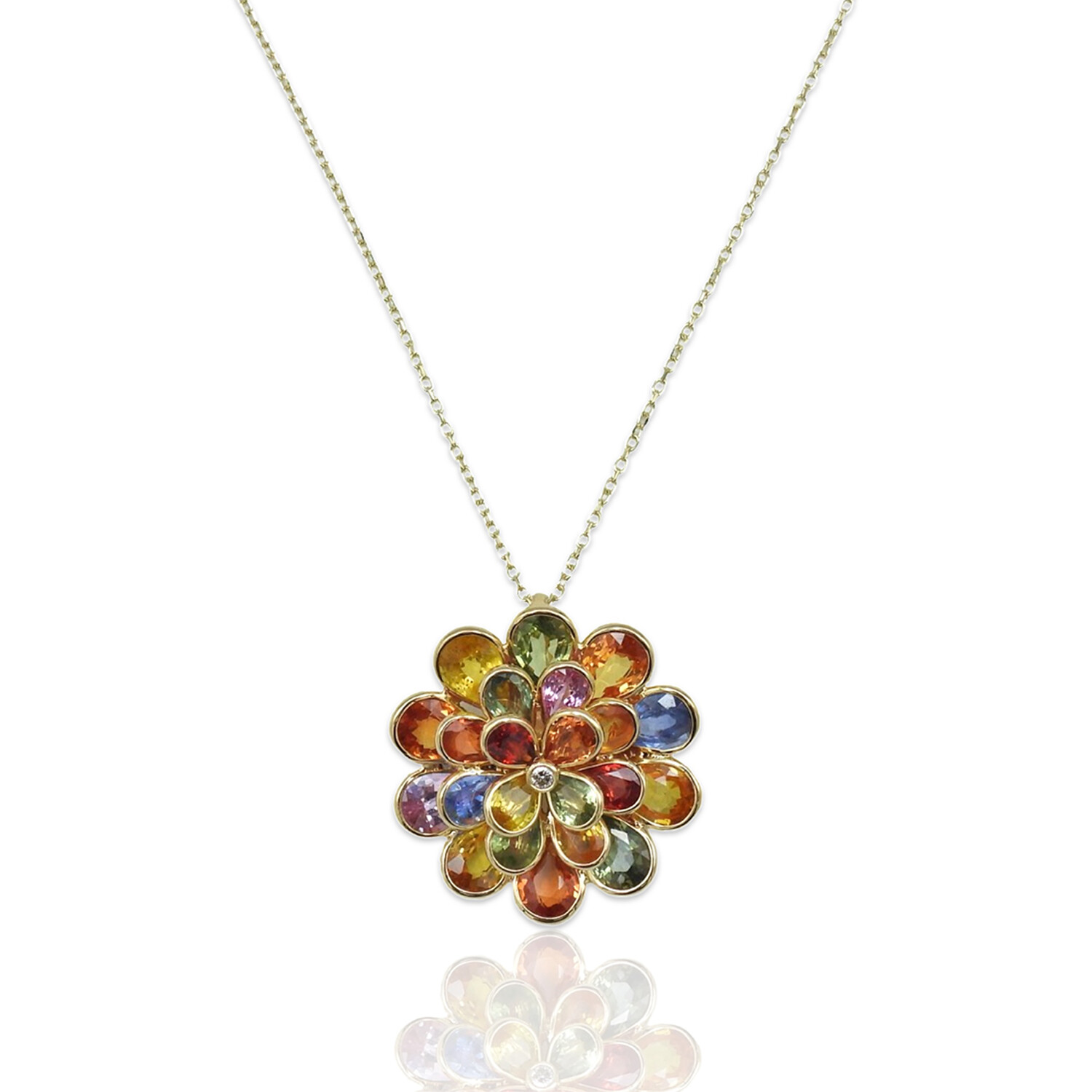 18K Yellow Gold Diamond + Sapphires Necklace // 16" // Pre-Owned