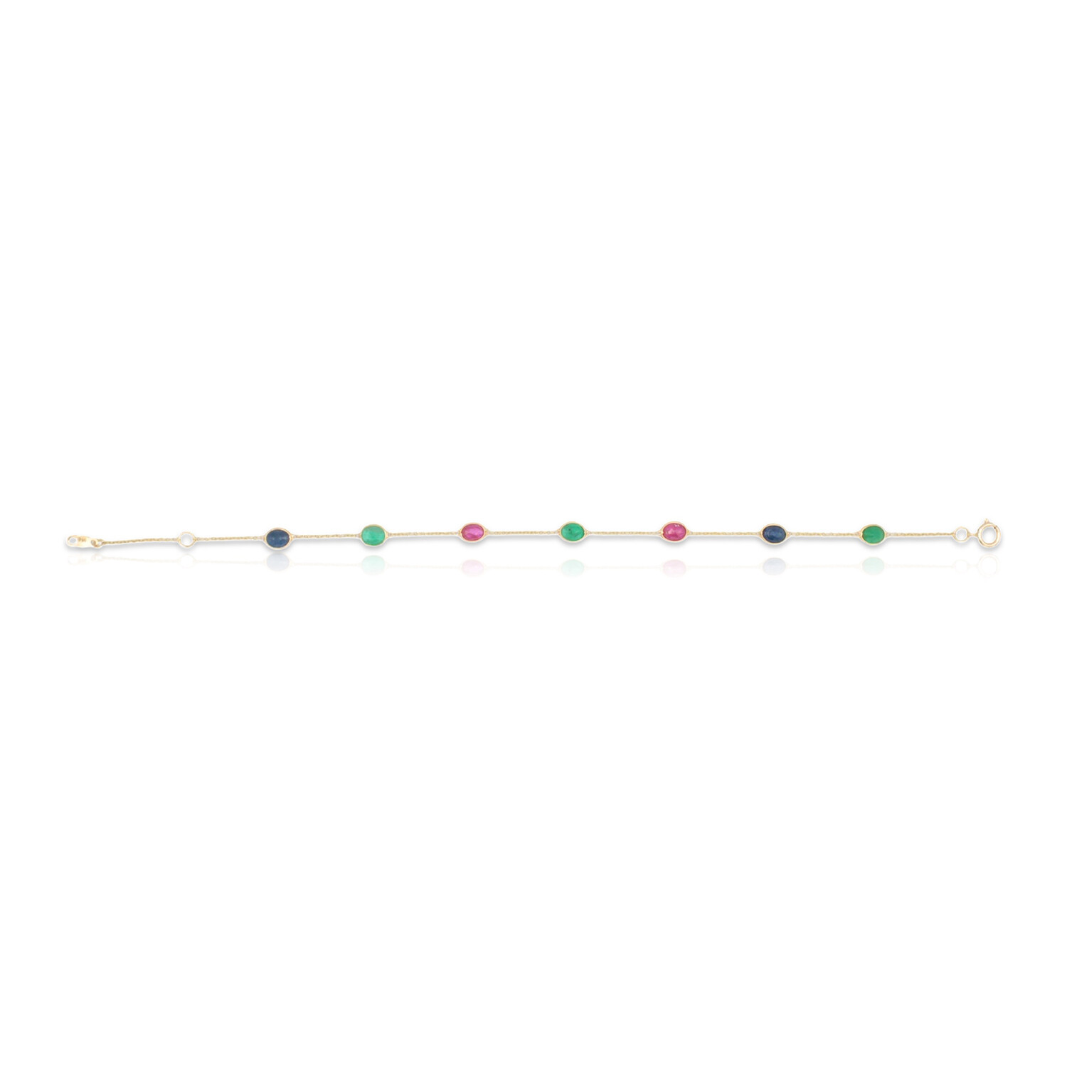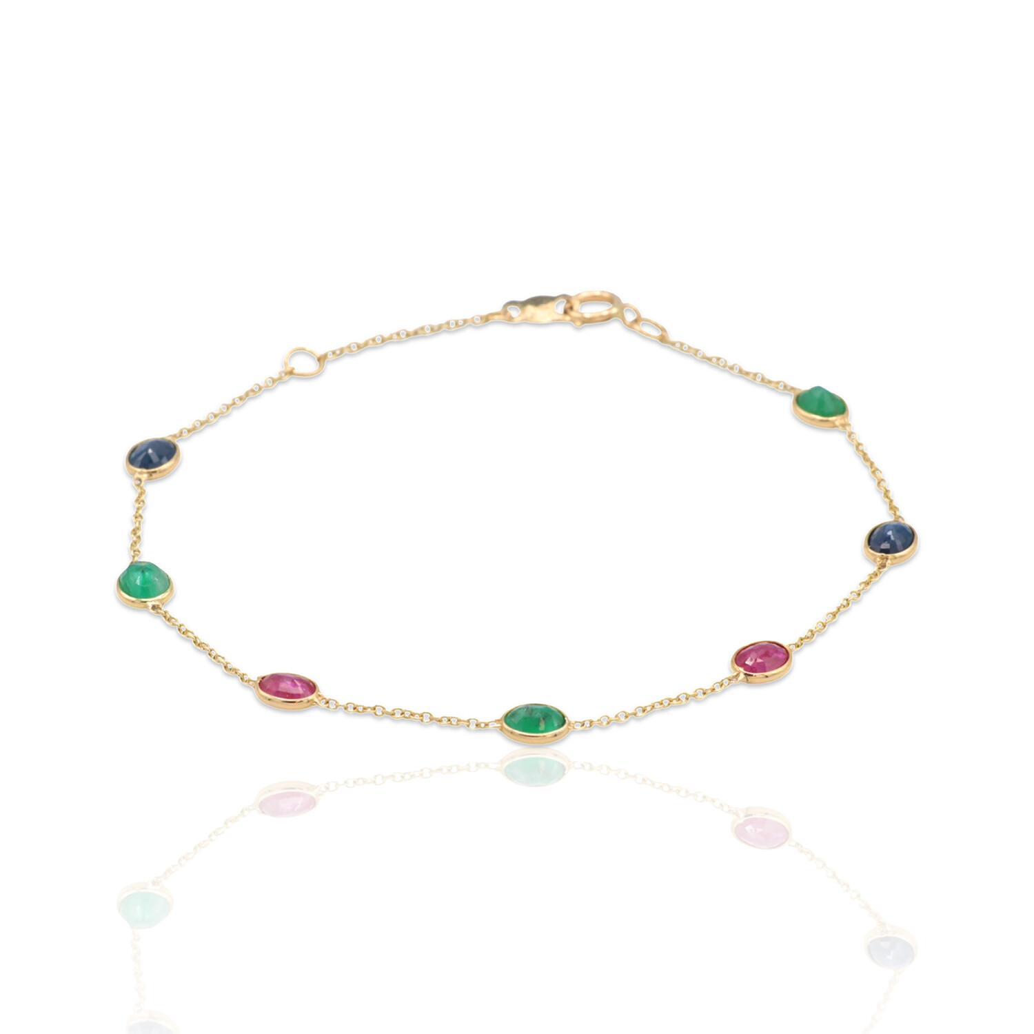 18K Yellow Gold Oval Ruby + Emerald + Sapphire Single Line Bracelet // 7.5" // Pre-Owned