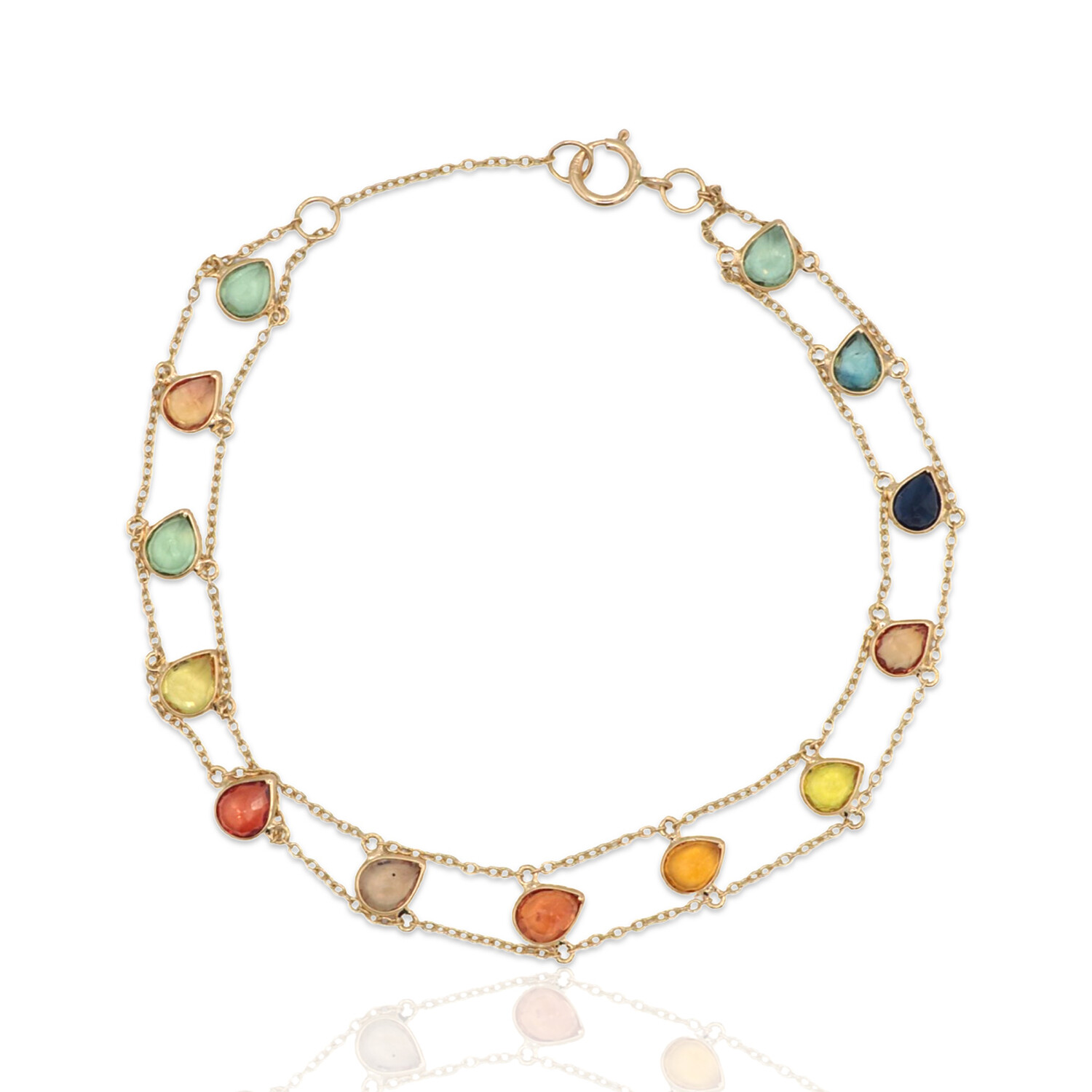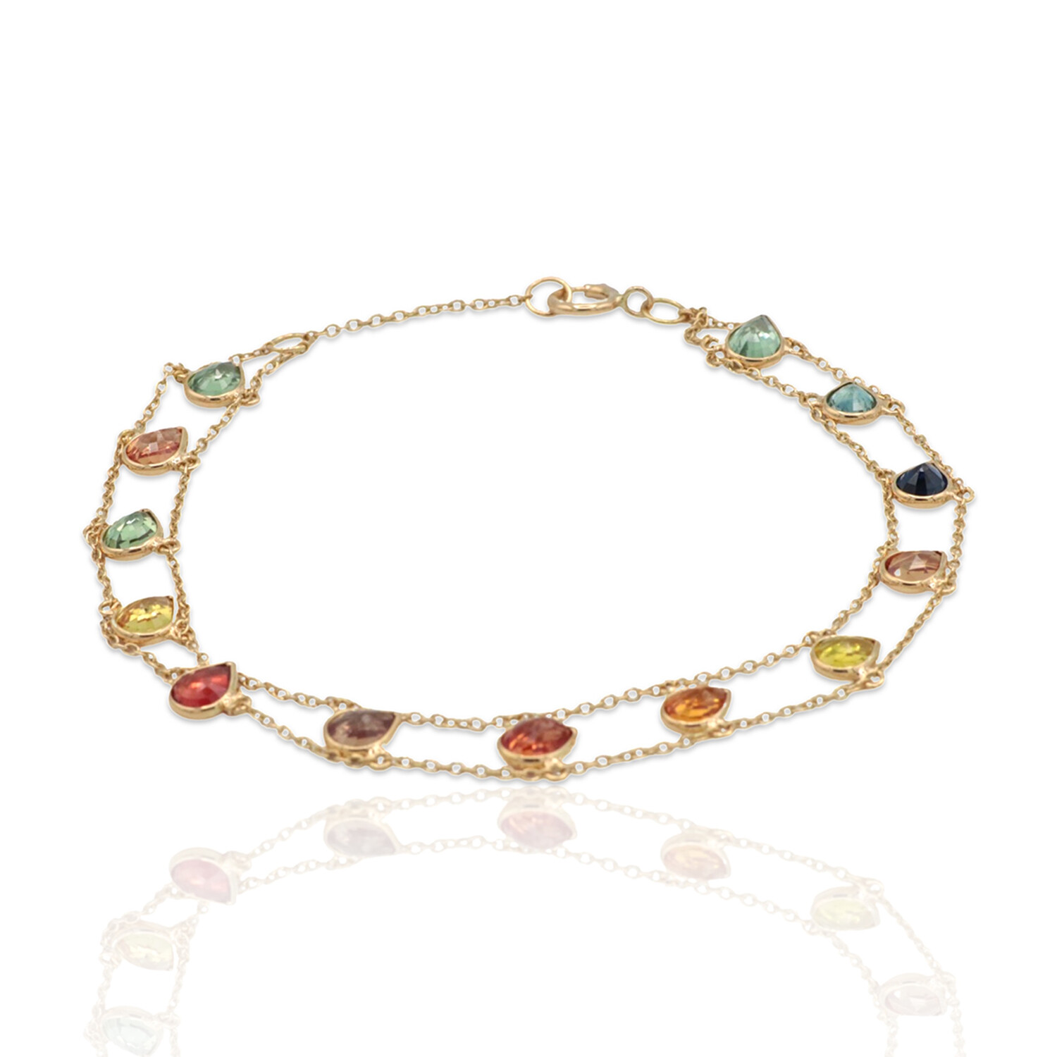 18K Yellow Gold Pear Shape Multi Sapphire Double Line Bracelet // 7.5" // Pre-Owned
