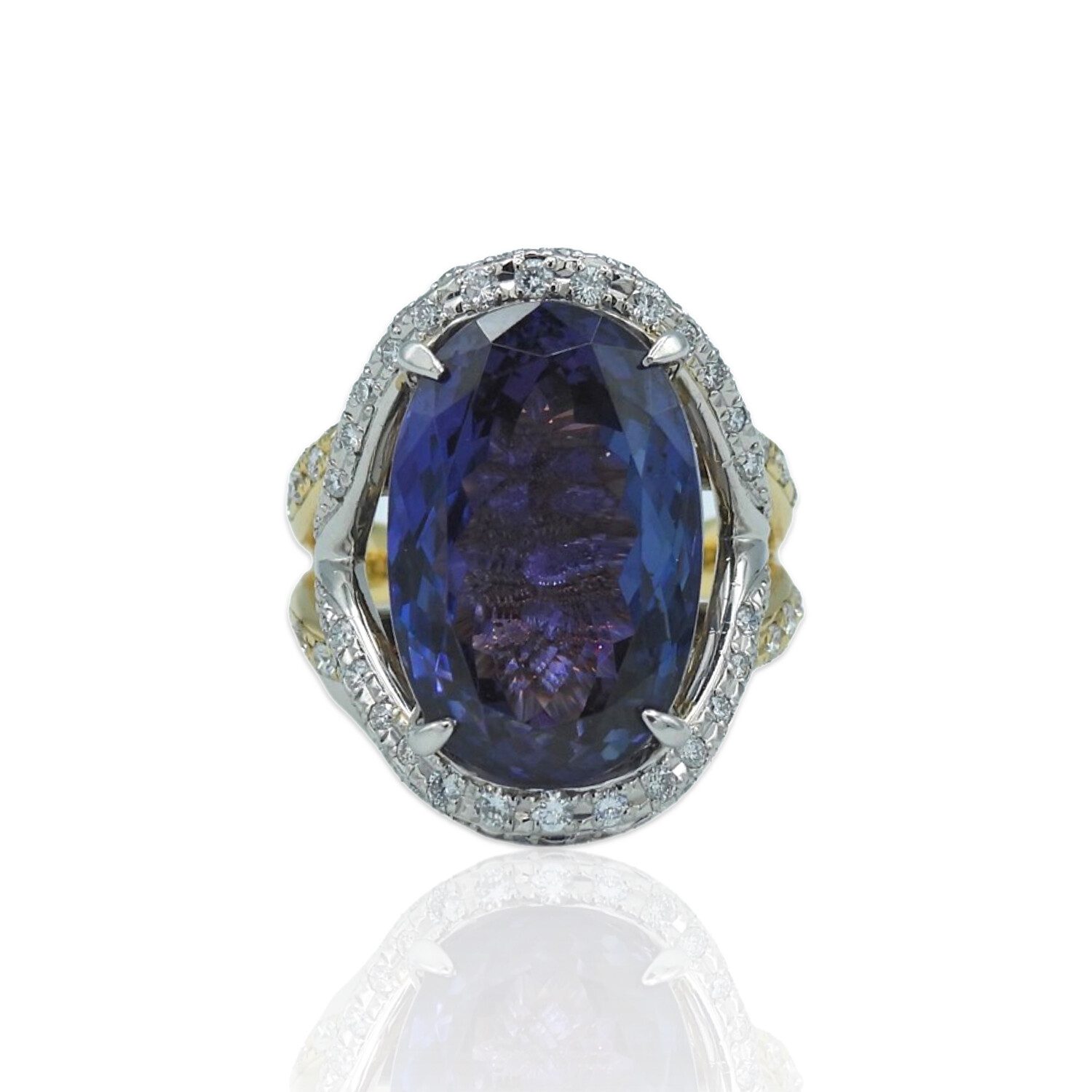 18K Yellow Gold + Platinum Diamond + Sapphire Ring // Ring Size: 6.75 // Pre-Owned