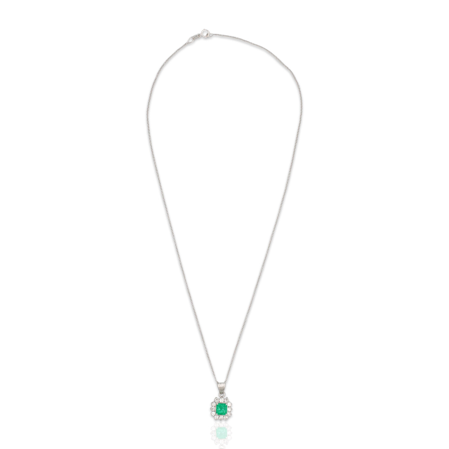 Platinum + 18K White Gold Diamond + Emerald Necklace // 16" // Pre-Owned