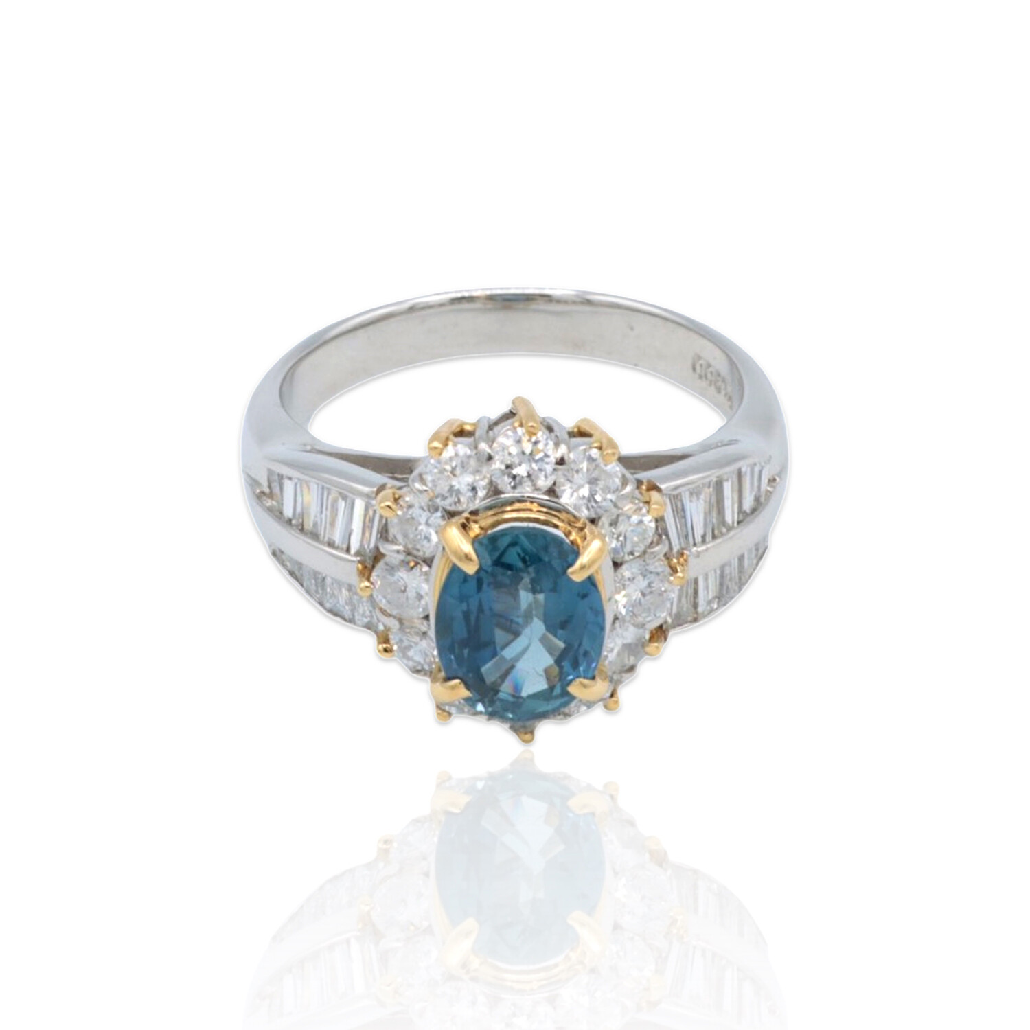 Platinum + 18K Yellow Gold Diamond + Sapphire Ring // Ring Size: 8.25 // Pre-Owned
