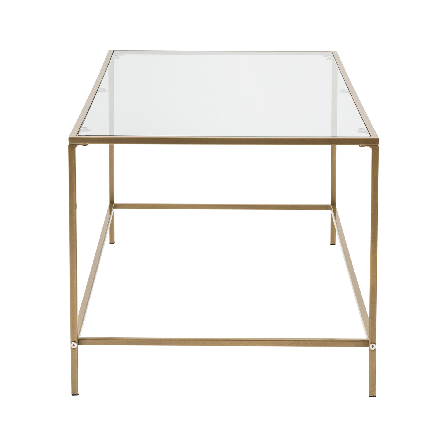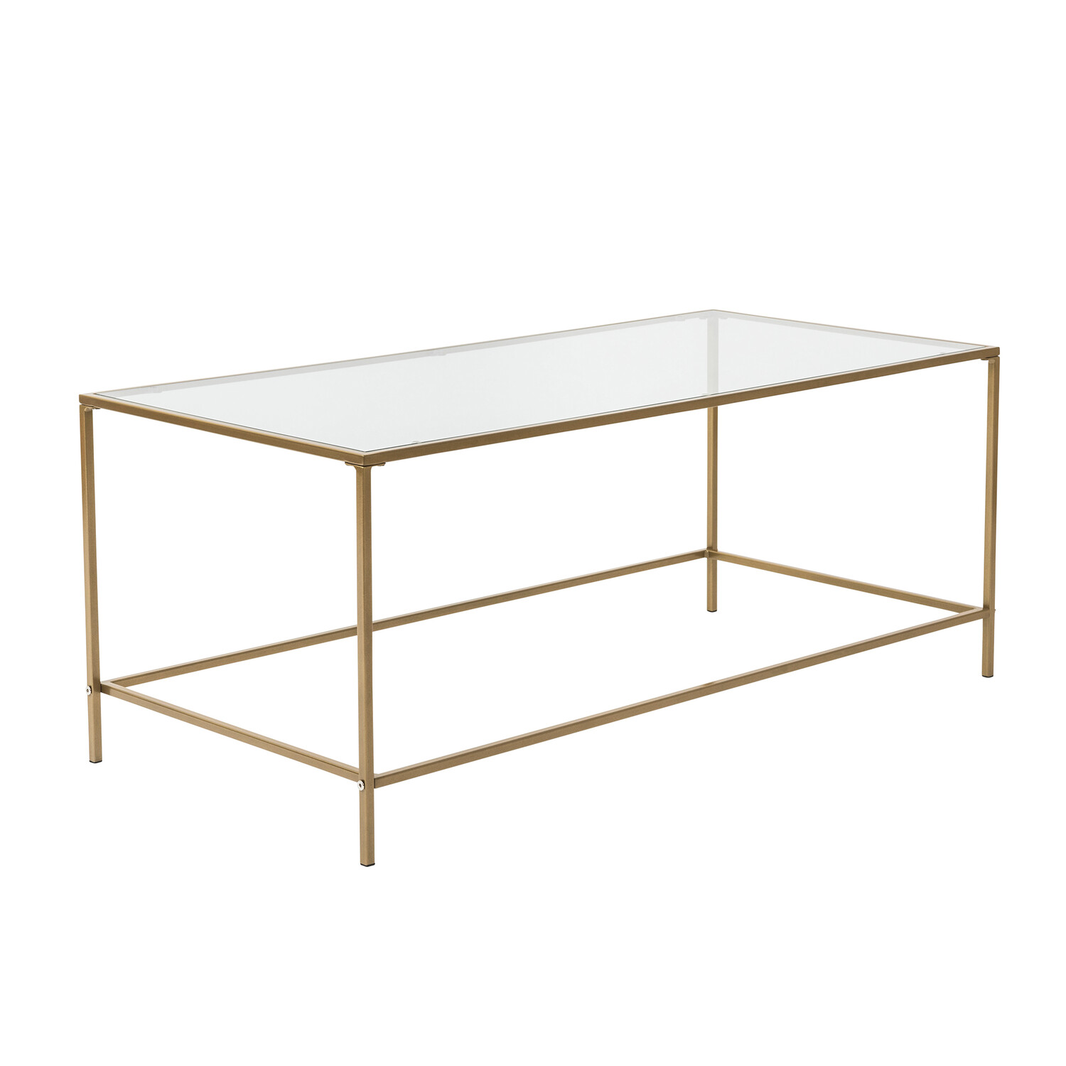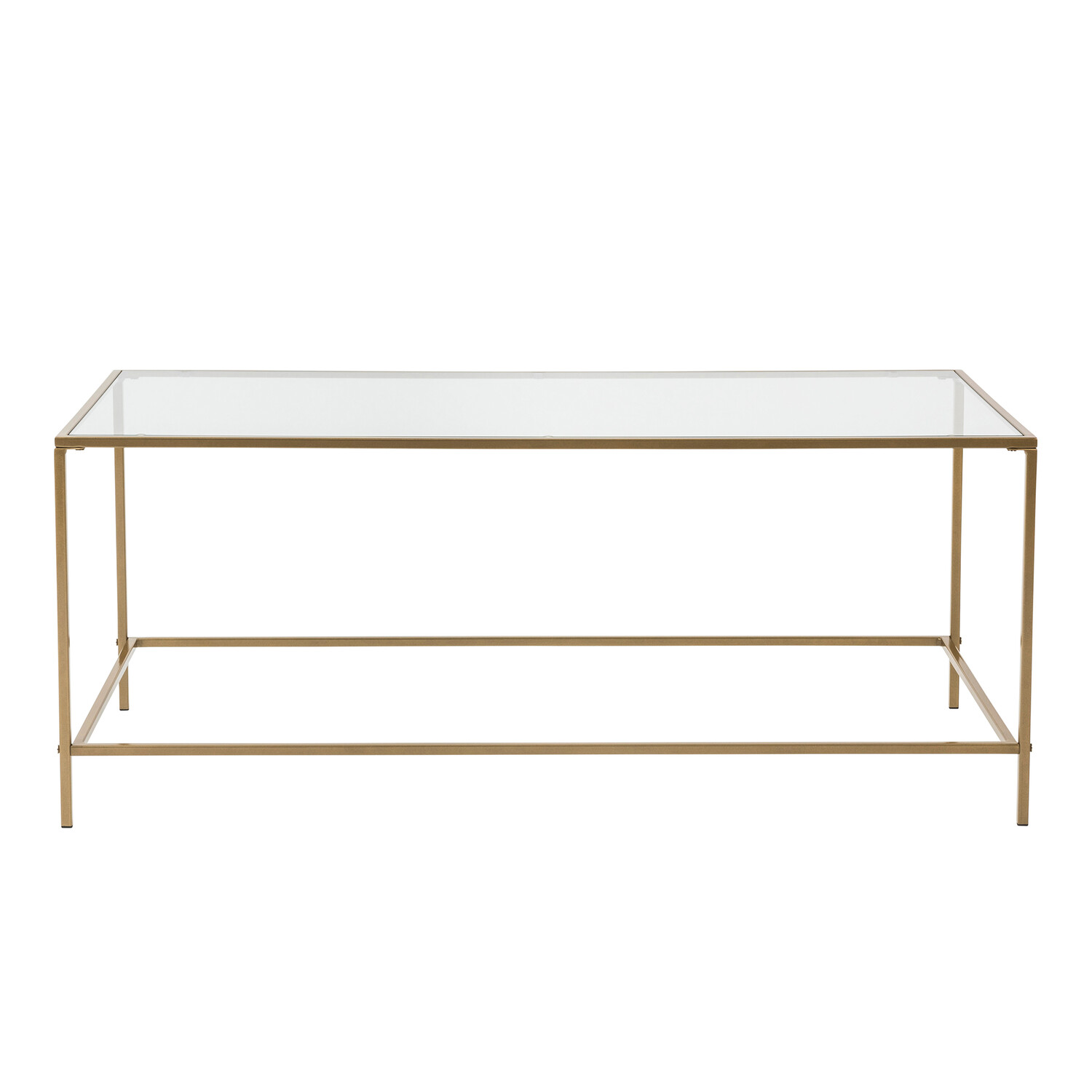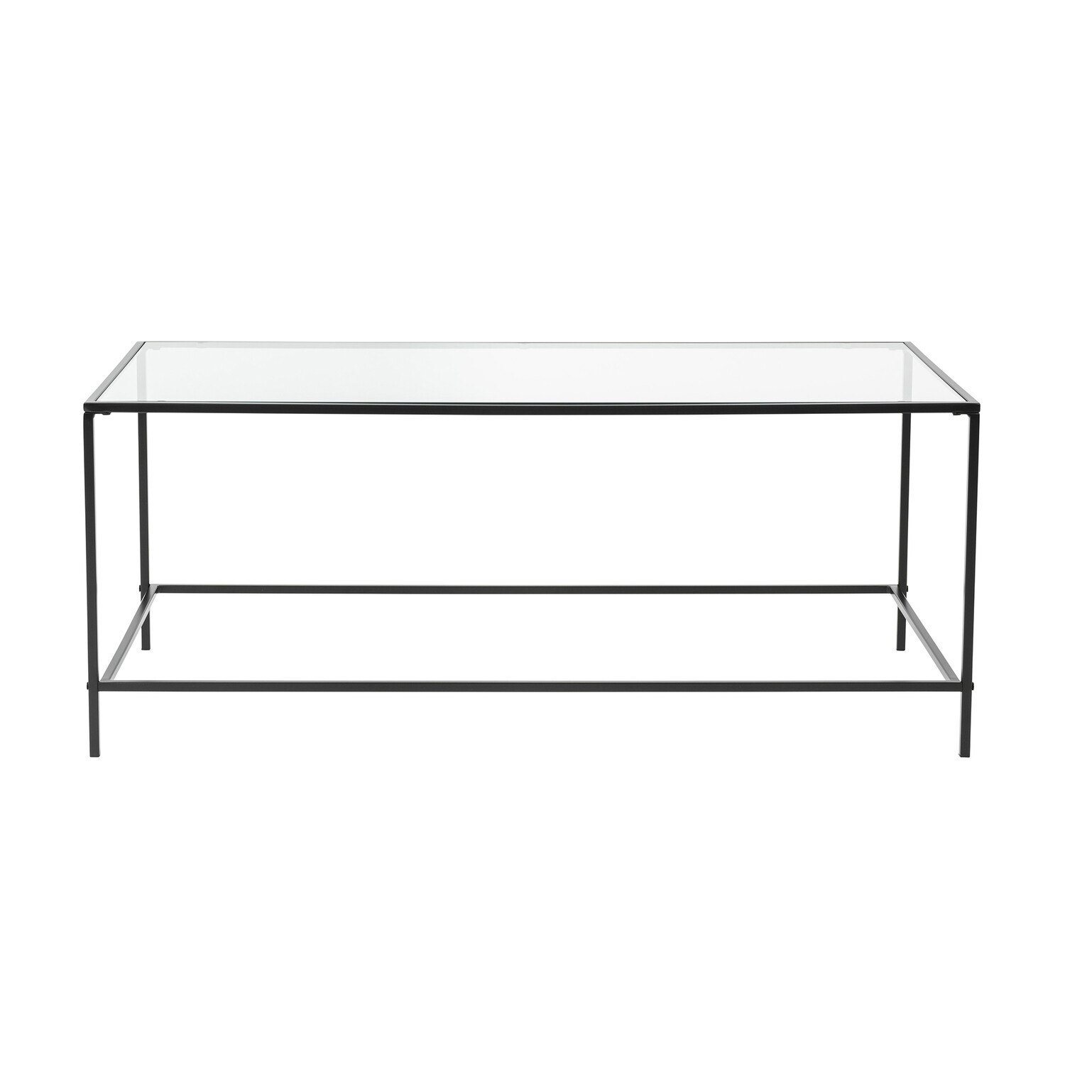 Use the Arvi Coffee Table to anchor your living room in contemporary style. Stack your fave coffee table books with plenty of room for your coffee cups. Its rectangular glass top sits securely atop a sturdy metal frame. Its sleek finish offers a splash of contemporary flair, while its open sides and clean lines ensure it won't overwhelm your existing arrangement.