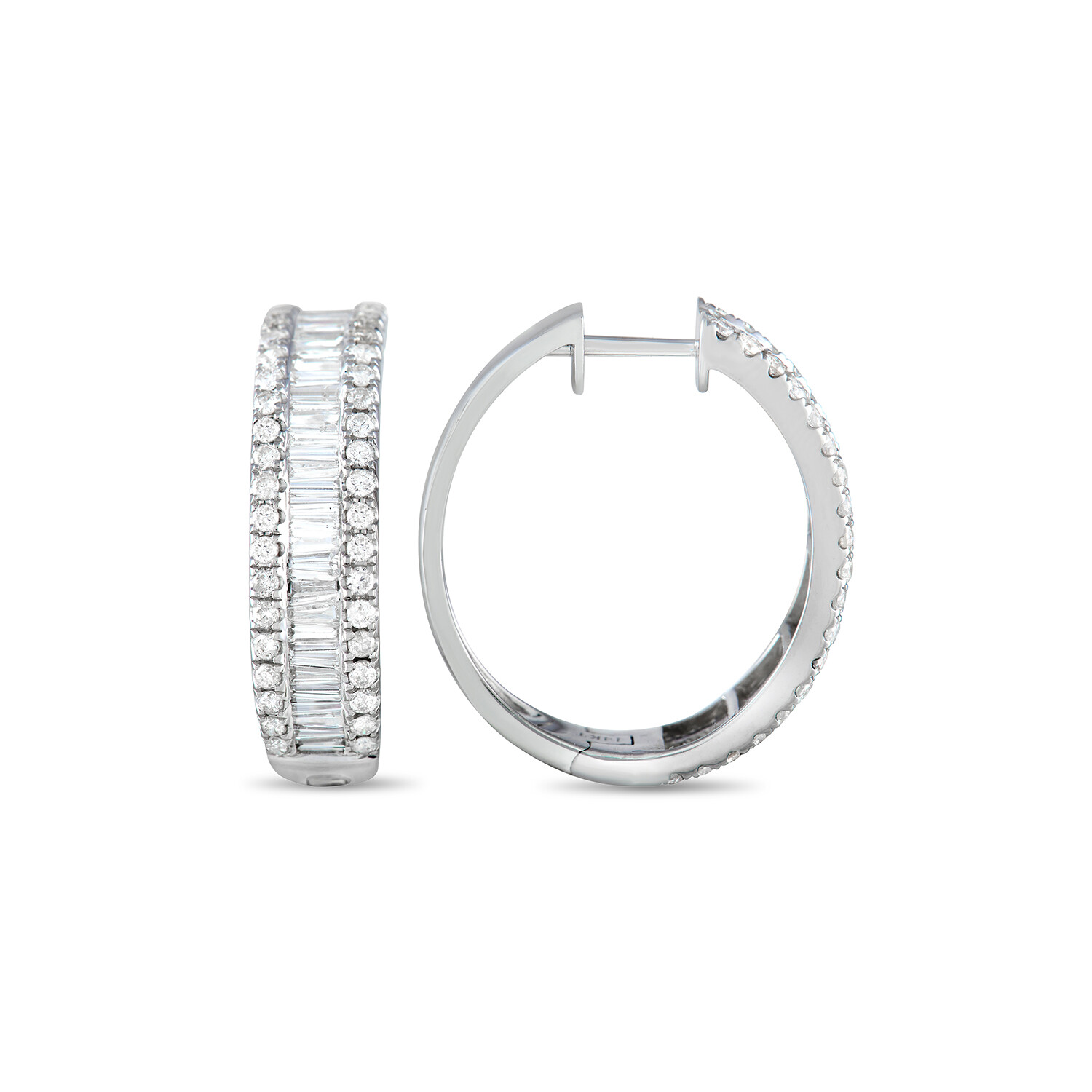 14K White Gold Diamond Hoop Earrings // New