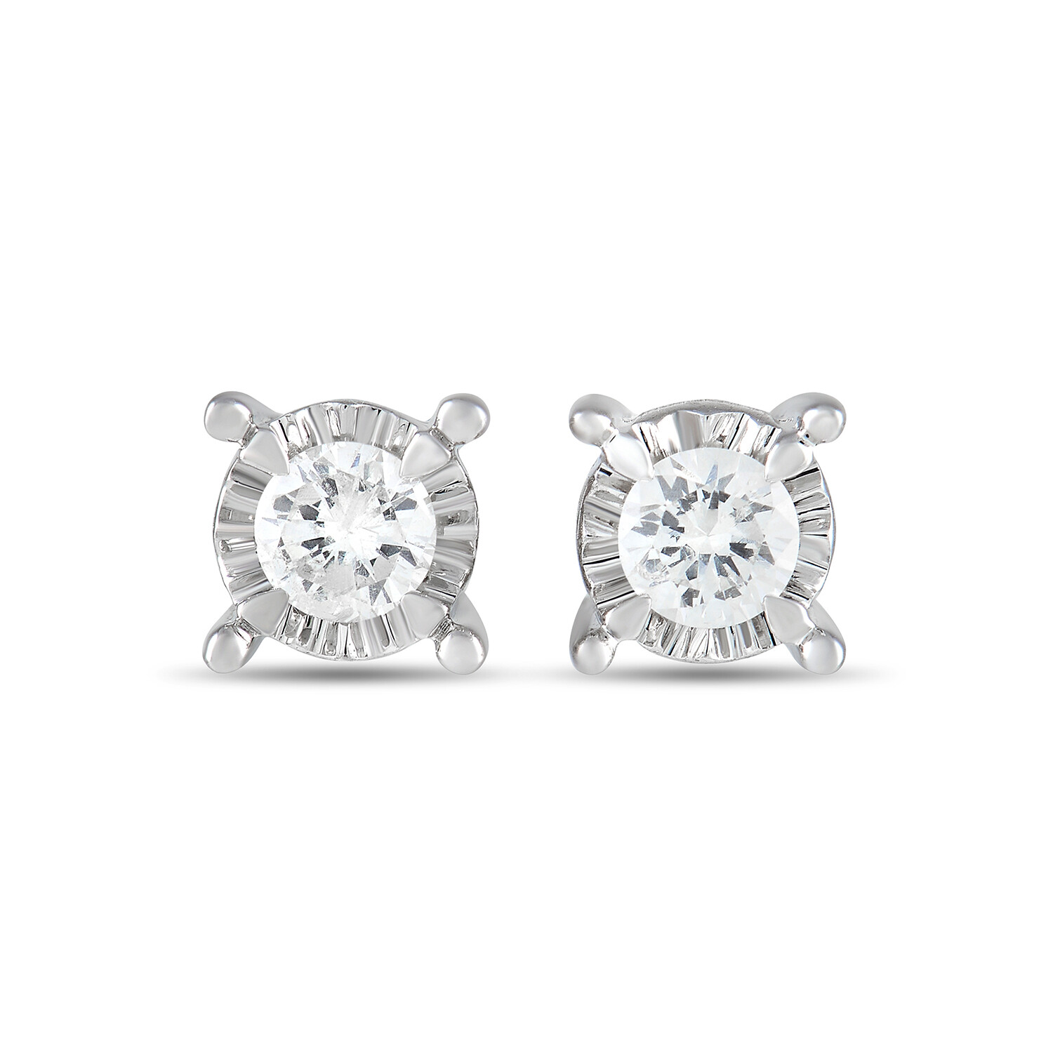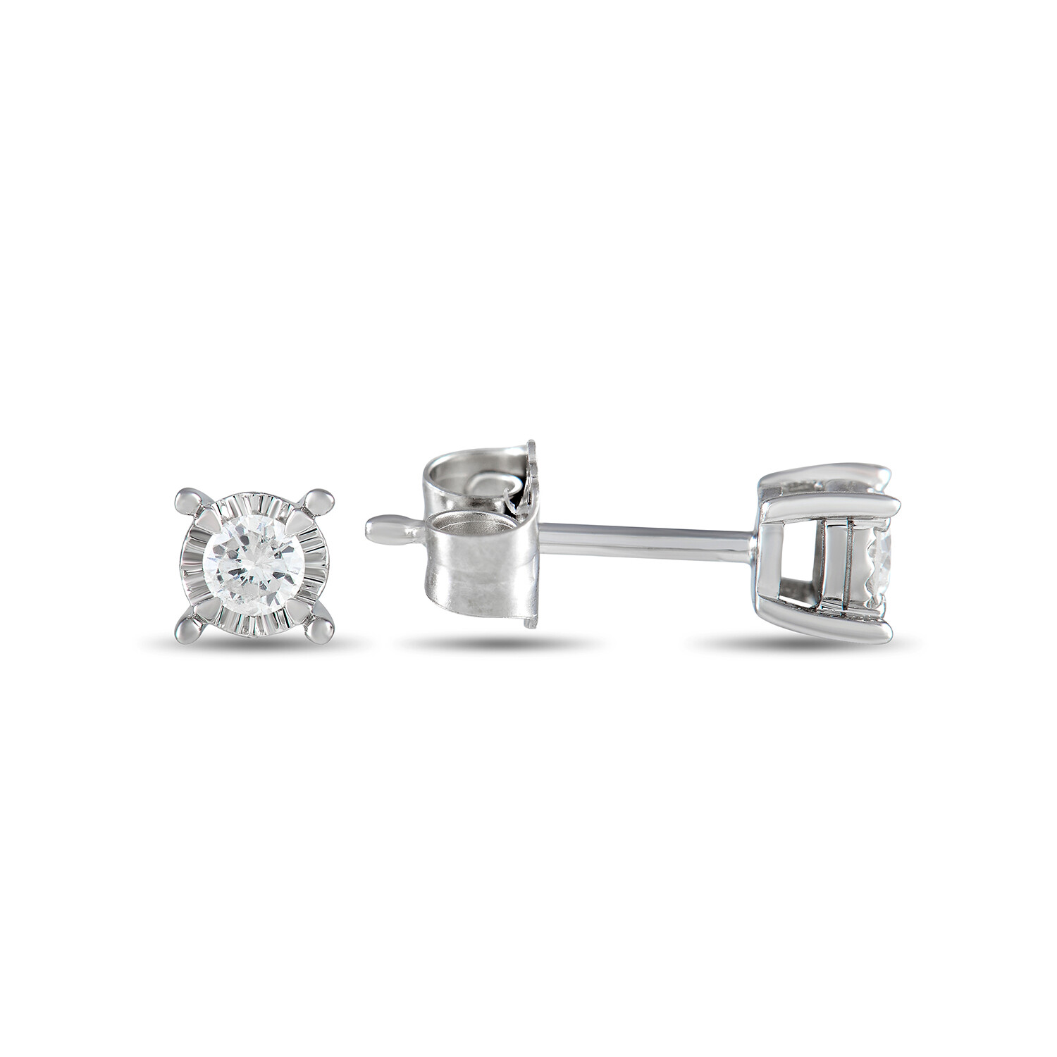 14K White Gold Diamond Stud Earrings // New