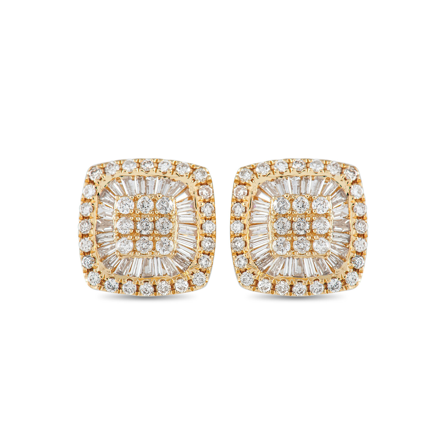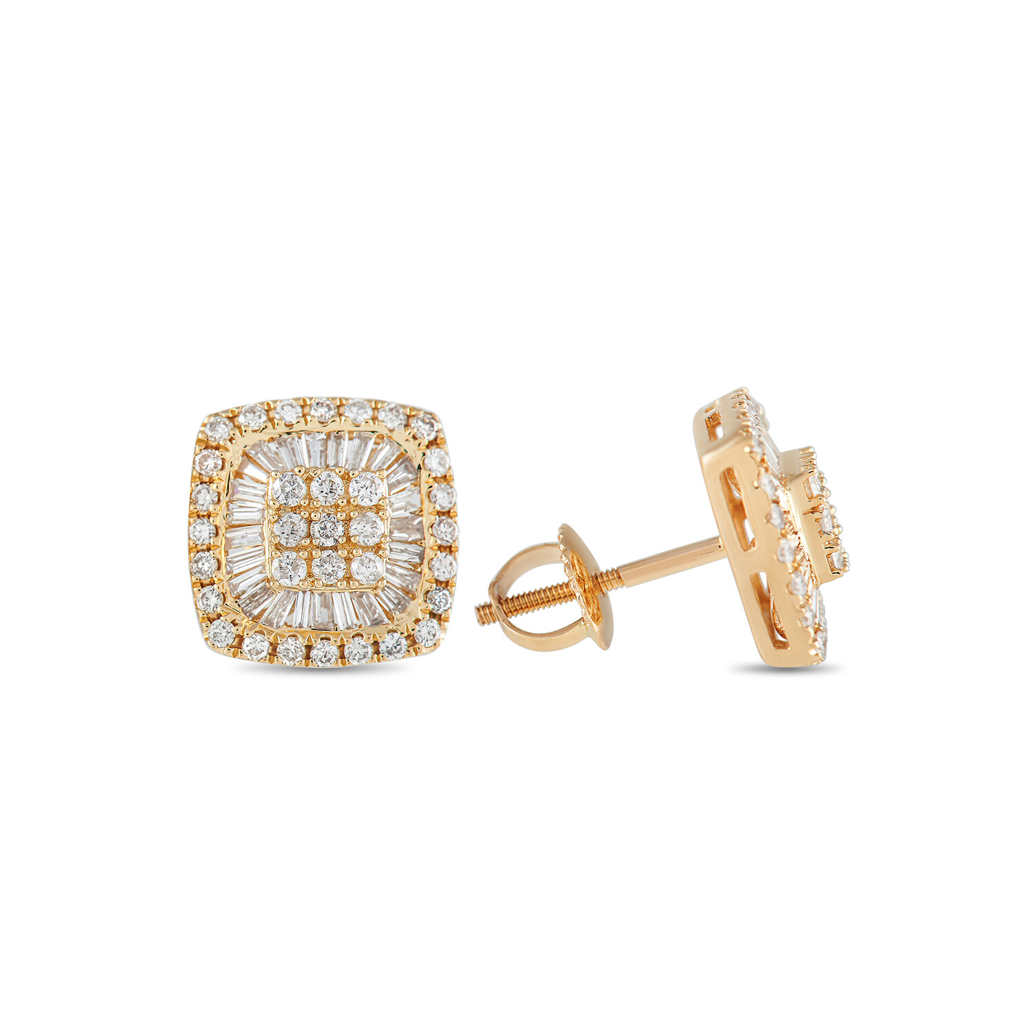 14K Yellow Gold Diamond Cushion Stud Earrings // New