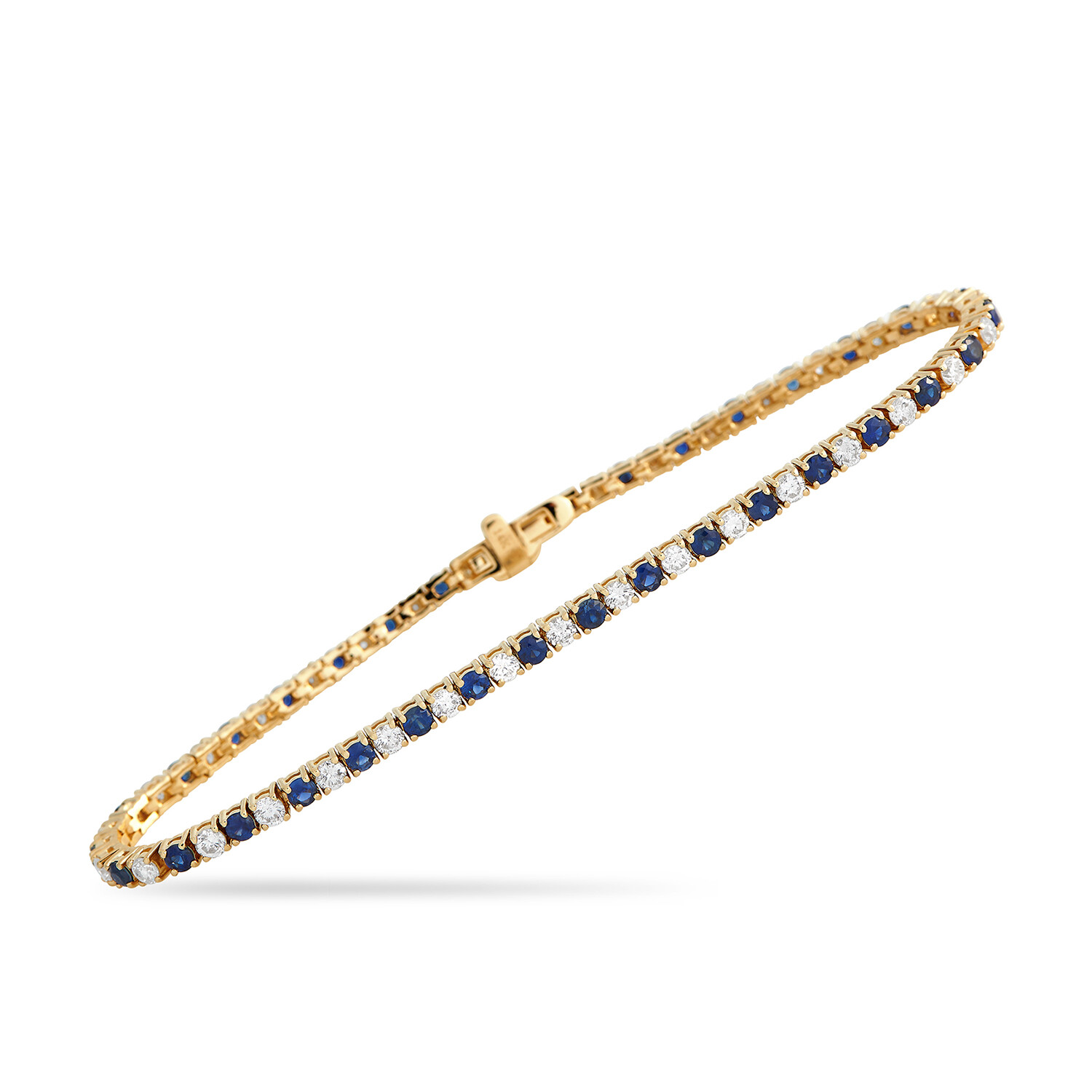 14K Yellow Gold Diamond + Sapphire Tennis Bracelet // 7.25" // New
