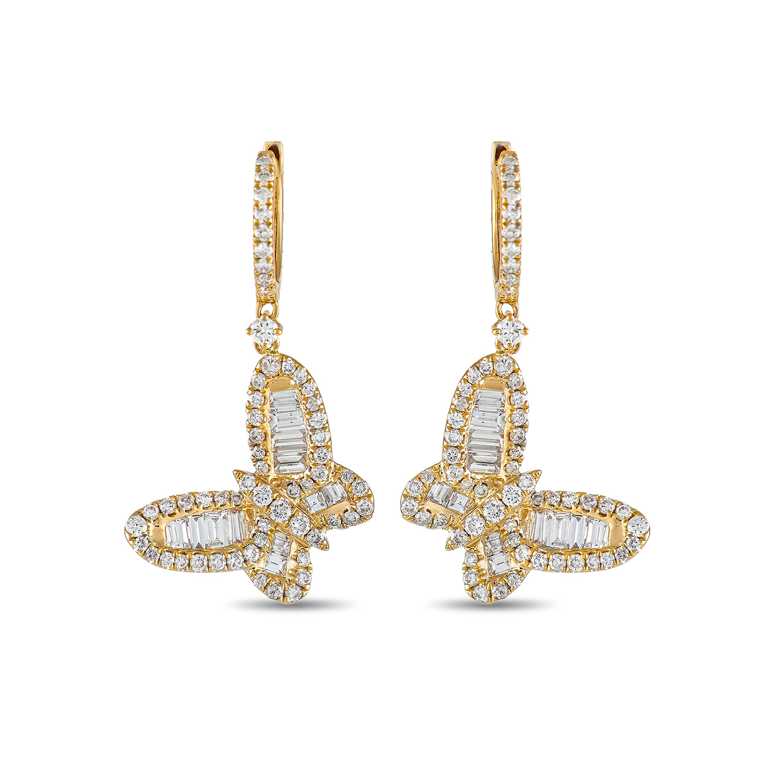 18K Yellow Gold Diamond Butterfly Dangle Earrings // New