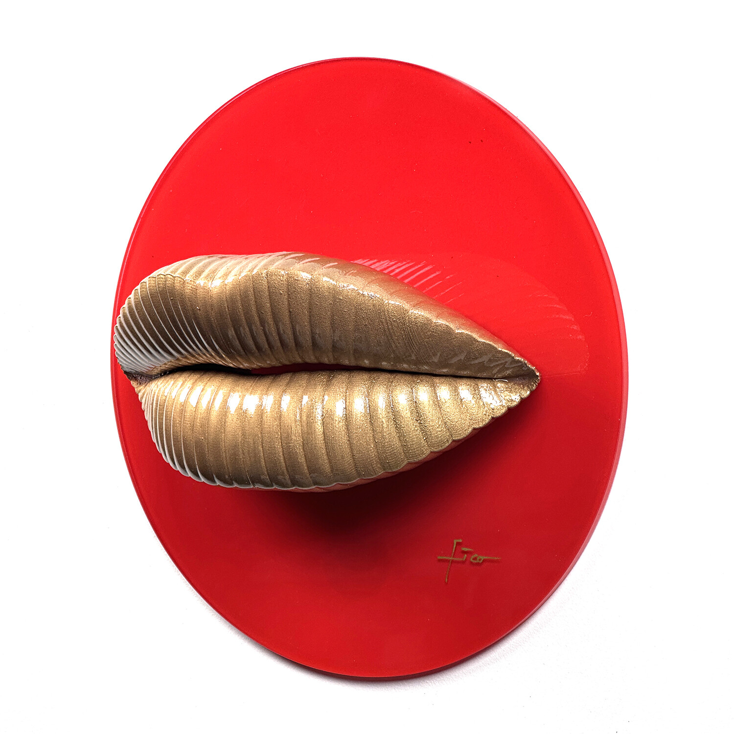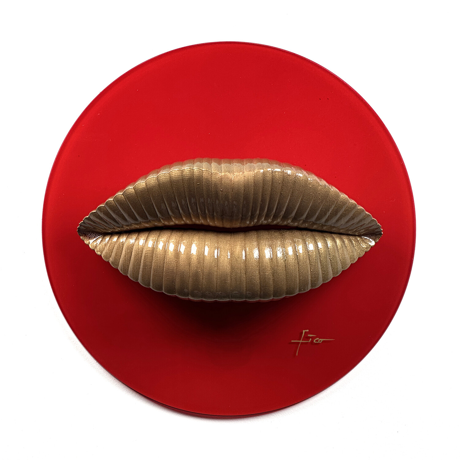 Lips Sculpture // Glossy Bronze On Glossy Red