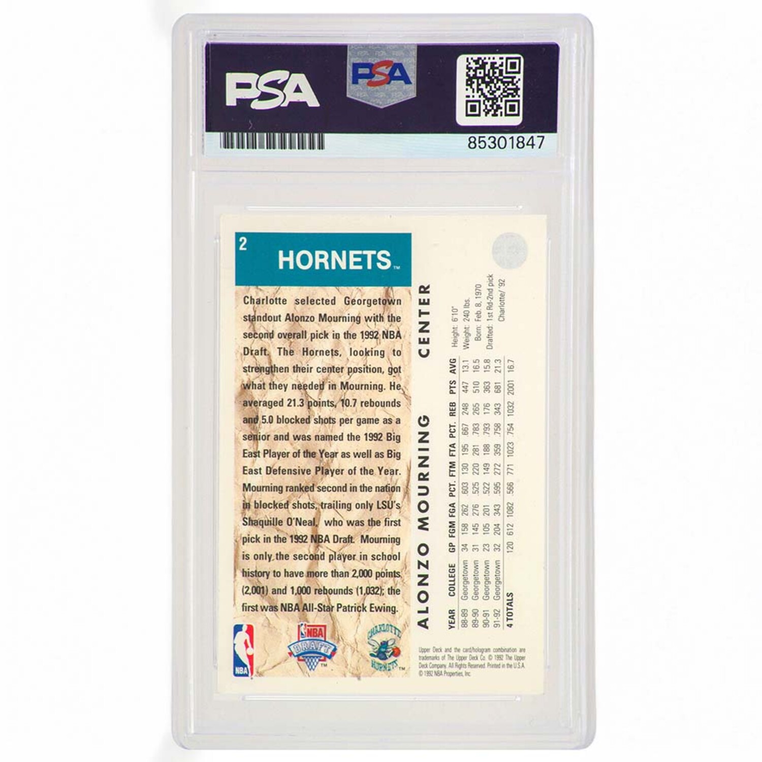 Alonzo Mourning // Signed 1992-93 Upper Deck RC #2