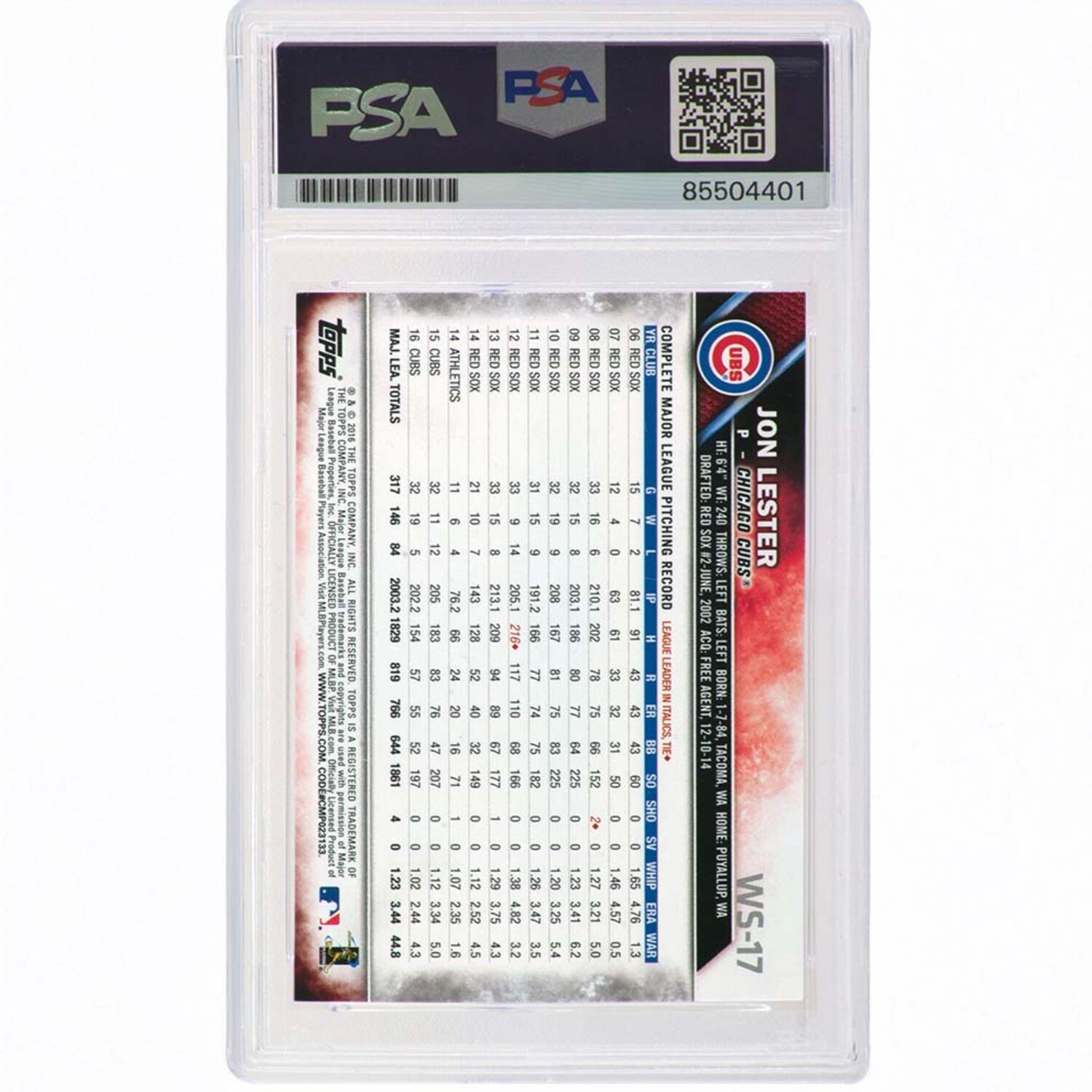 Celebrate an unforgettable championship run with this Jon Lester Signed 2016 Topps World Series Champions Card #WS17. Featuring his key role with the Chicago Cubs, this card has been authenticated and encapsulated by PSA/DNA, guaranteeing authenticity and long-term protection.