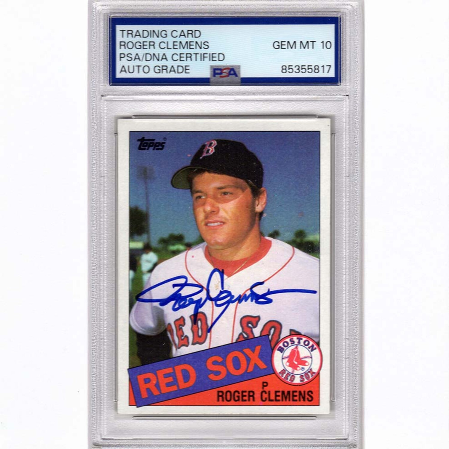 Add a rare gem to your collection with this Roger Clemens Signed 1985 Topps Rookie Card #181. Featuring his Boston Red Sox debut season, the autograph has been authenticated and encapsulated by PSA/DNA and graded a pristine Mint 10. Please note: only the autograph is graded; the card itself remains ungraded.