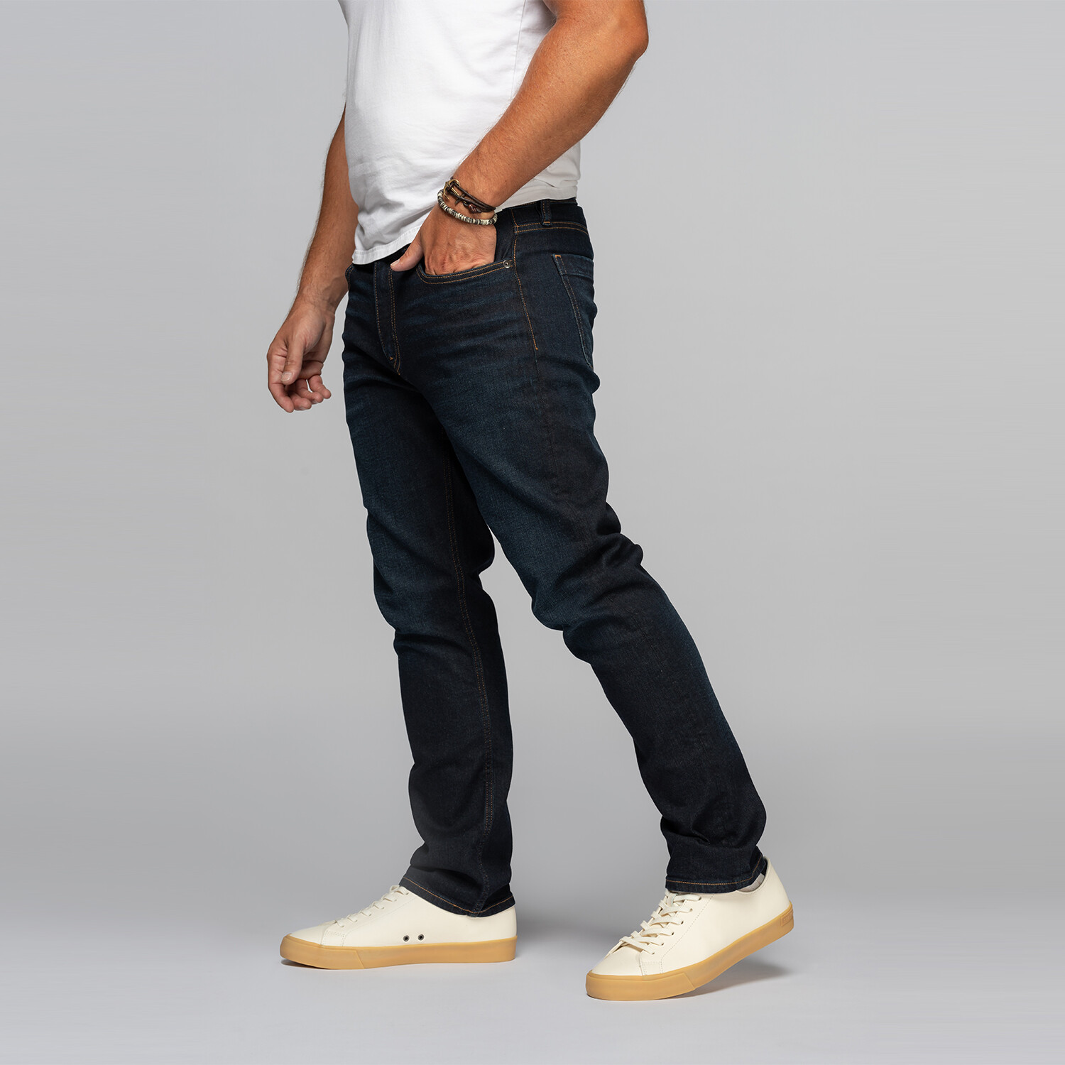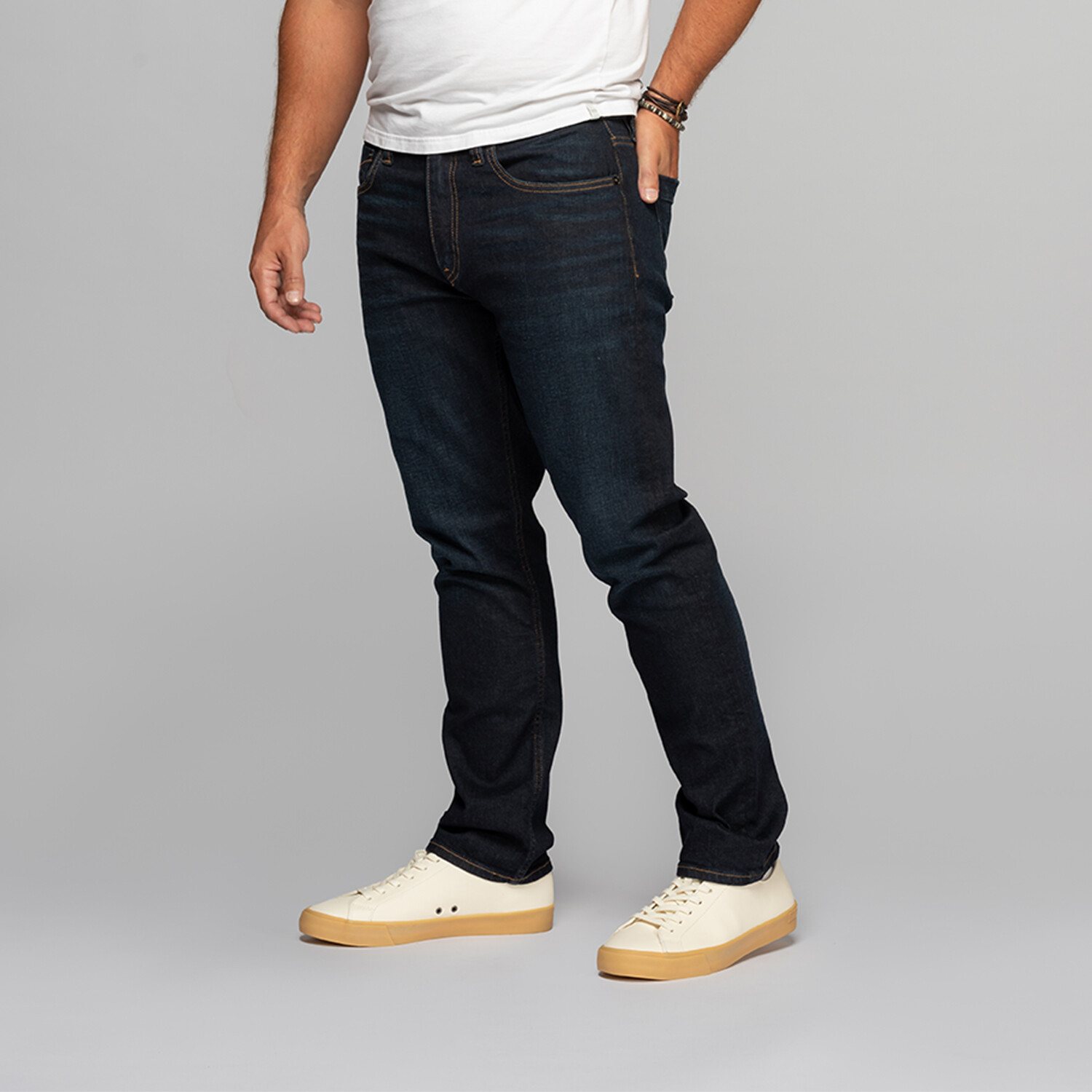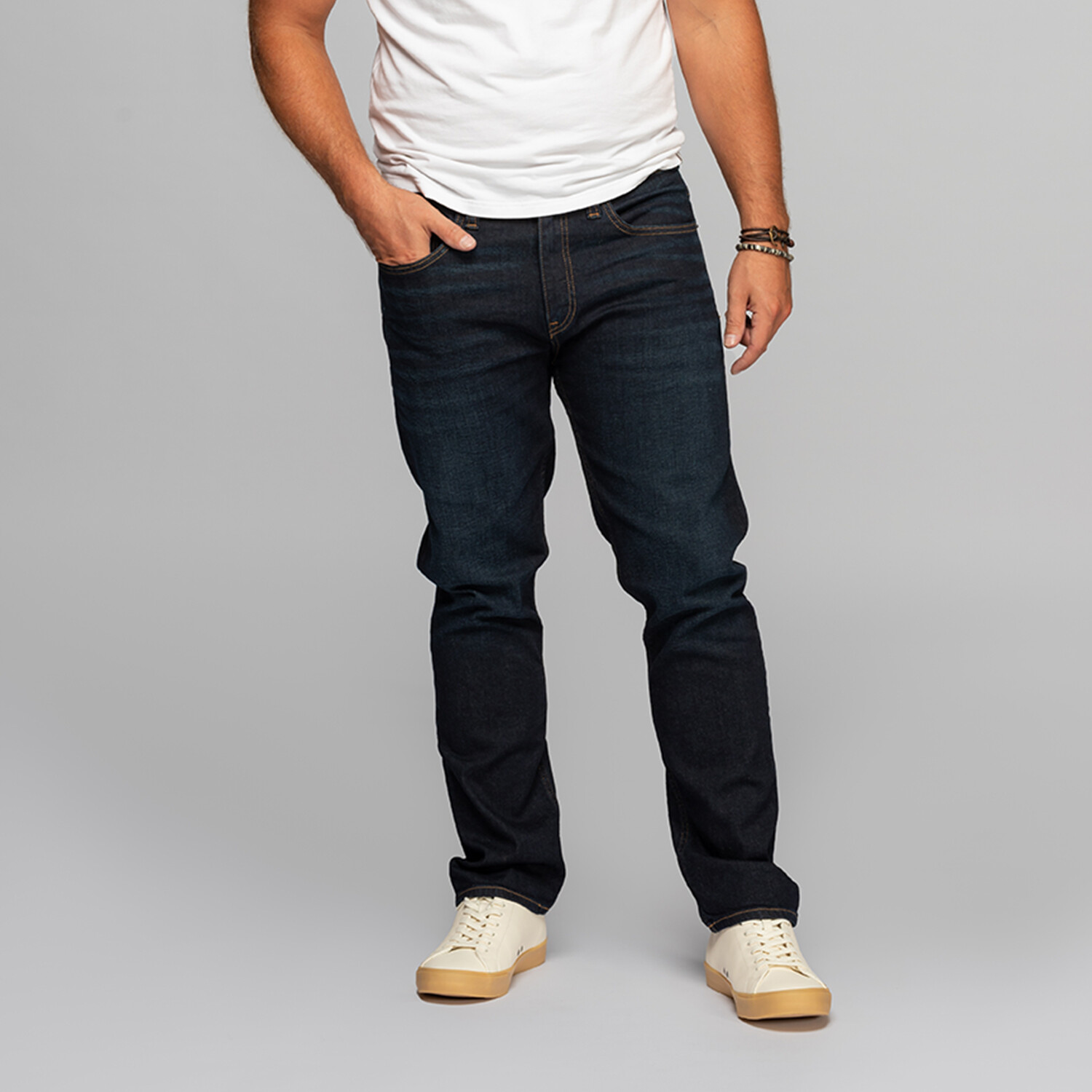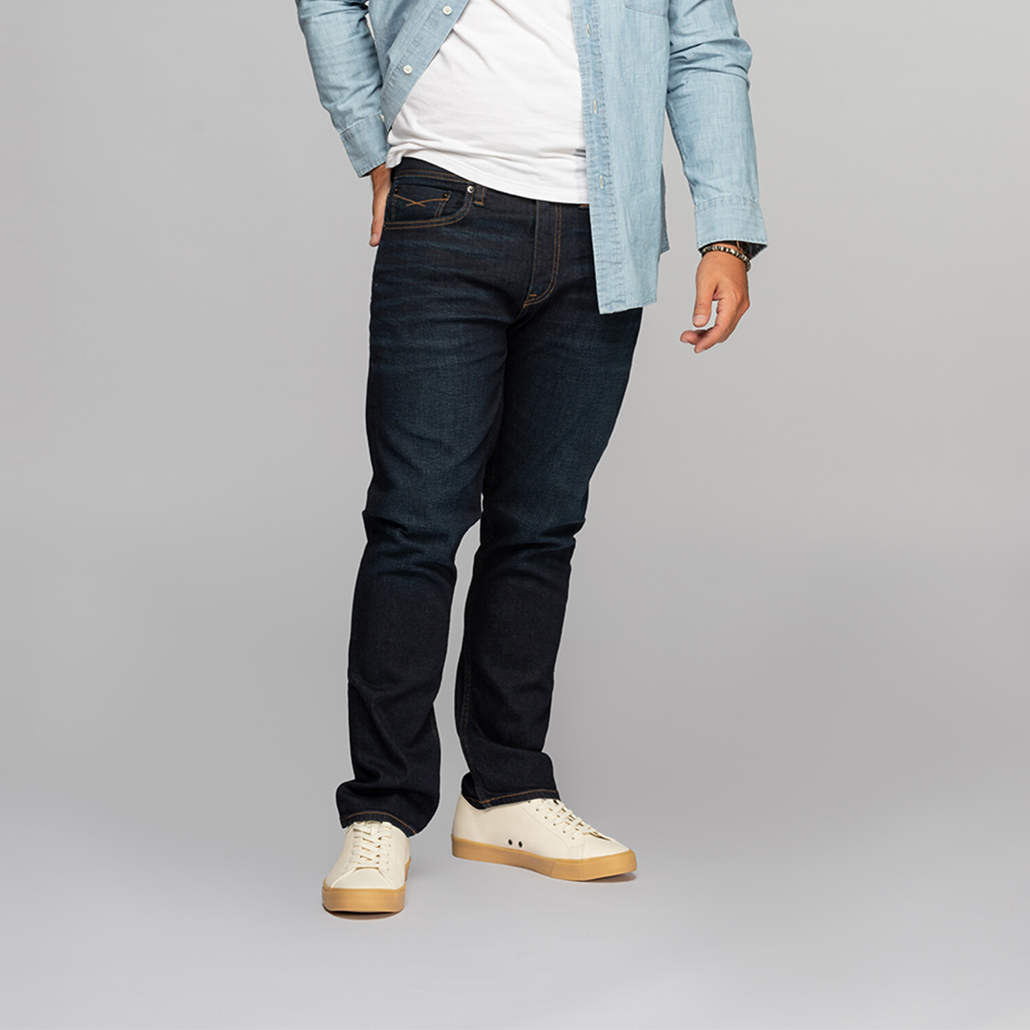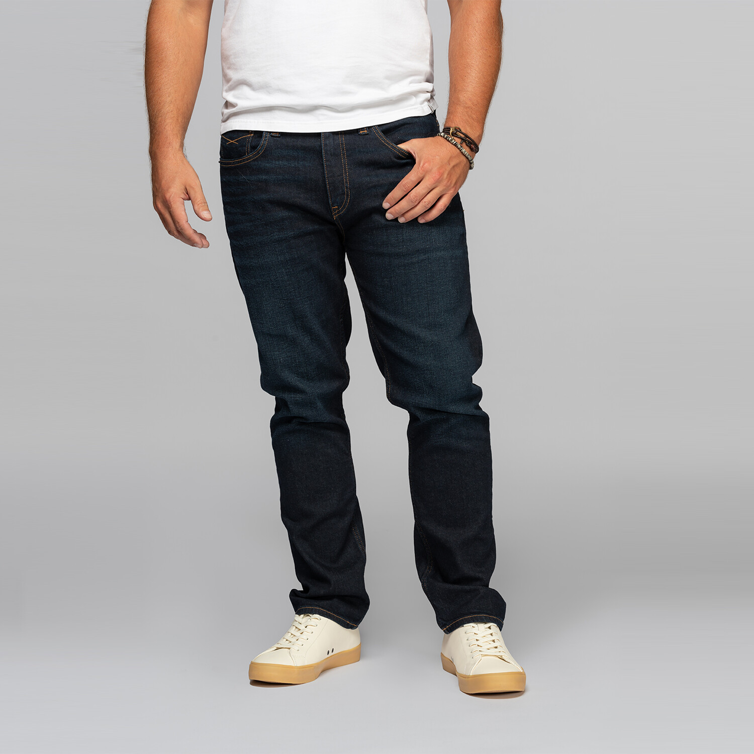The Sharp Jean is Revtown's best selling, regular fit jean. It’s a classic, easy going fit makes it perfect for every day wear & every occasion. Signature Decade Denim is at the heart of Revtown. The iconic fabric you love, with an innovative twist. It’s a proprietary blend that combines premium Italian-milled denim, a little bit of stretch and a strong, durable thread- just like the stuff used in football uniforms and workout gear. This athletic stretch allows for even bigger guys to wear the correct size and look… well, Sharp! The Sharp has a 15” leg opening & an 11” front rise. Dark Indigo is a classic, dark indigo that has a gold contrast stitching..