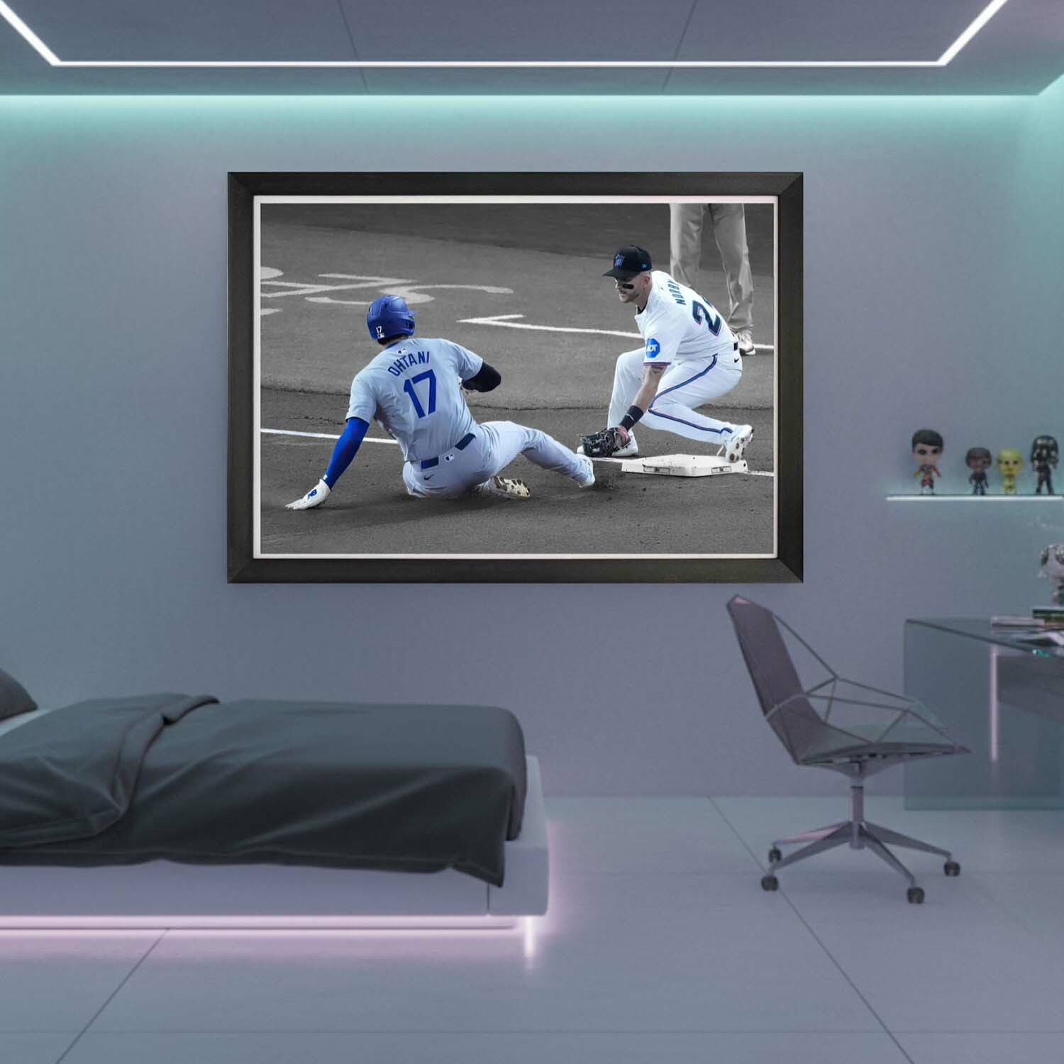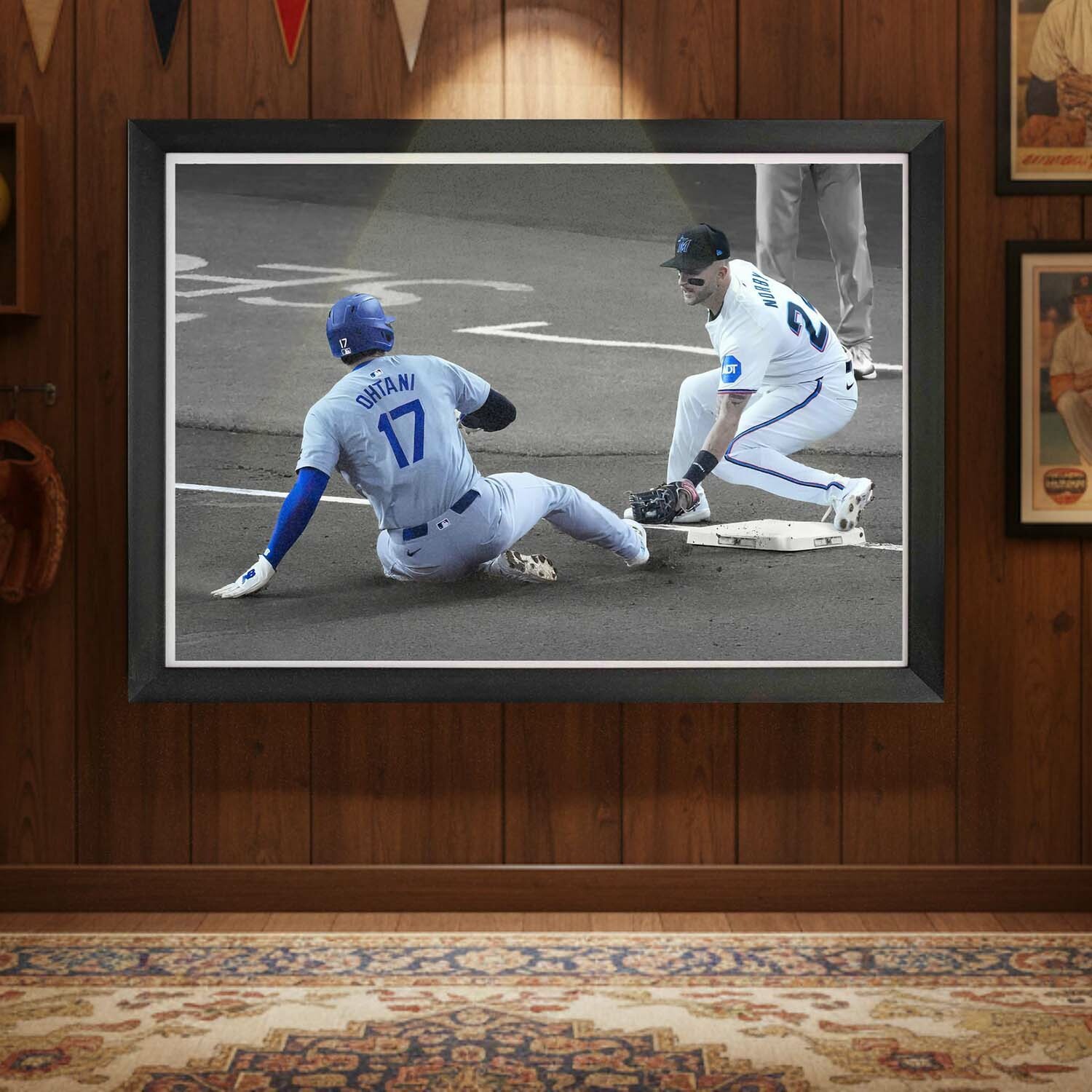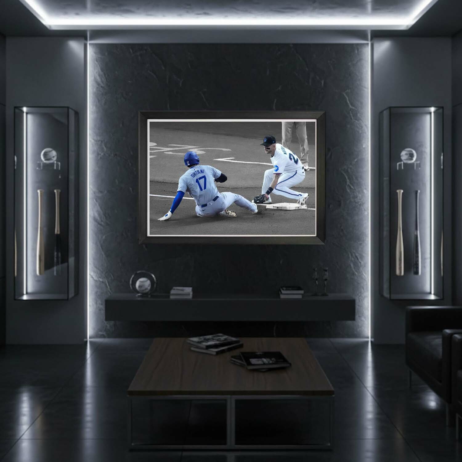 Commemorate Shohei Ohtani’s remarkable achievement of 50 stolen bases with this stunning framed canvas. Further solidifying his status as one of the greatest players in baseball history, this piece captures the speed, skill, and tenacity of Ohtani in a historic moment. Measuring 33.5 x 23.5 inches, it’s ideal for those who appreciate the unmatched versatility and talent of one of the game’s brightest stars. A must-have for any serious collector.