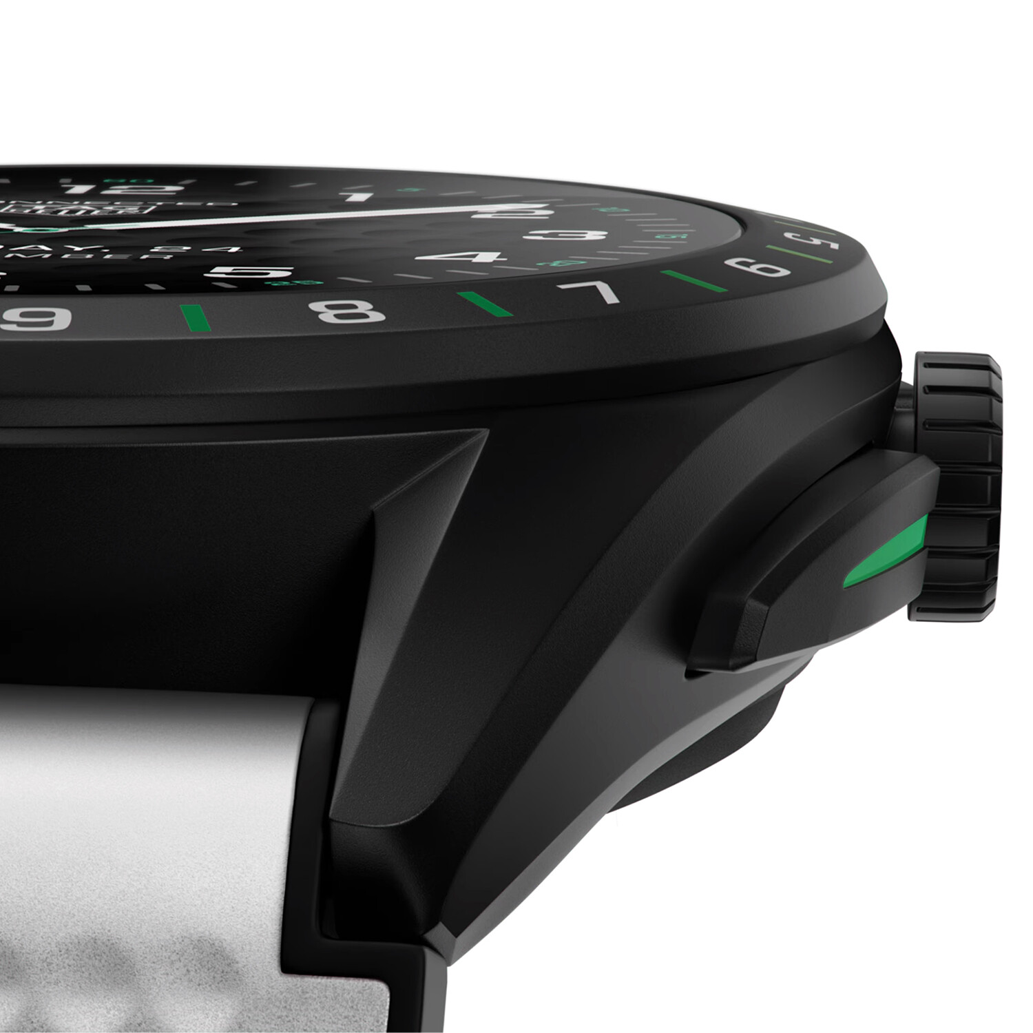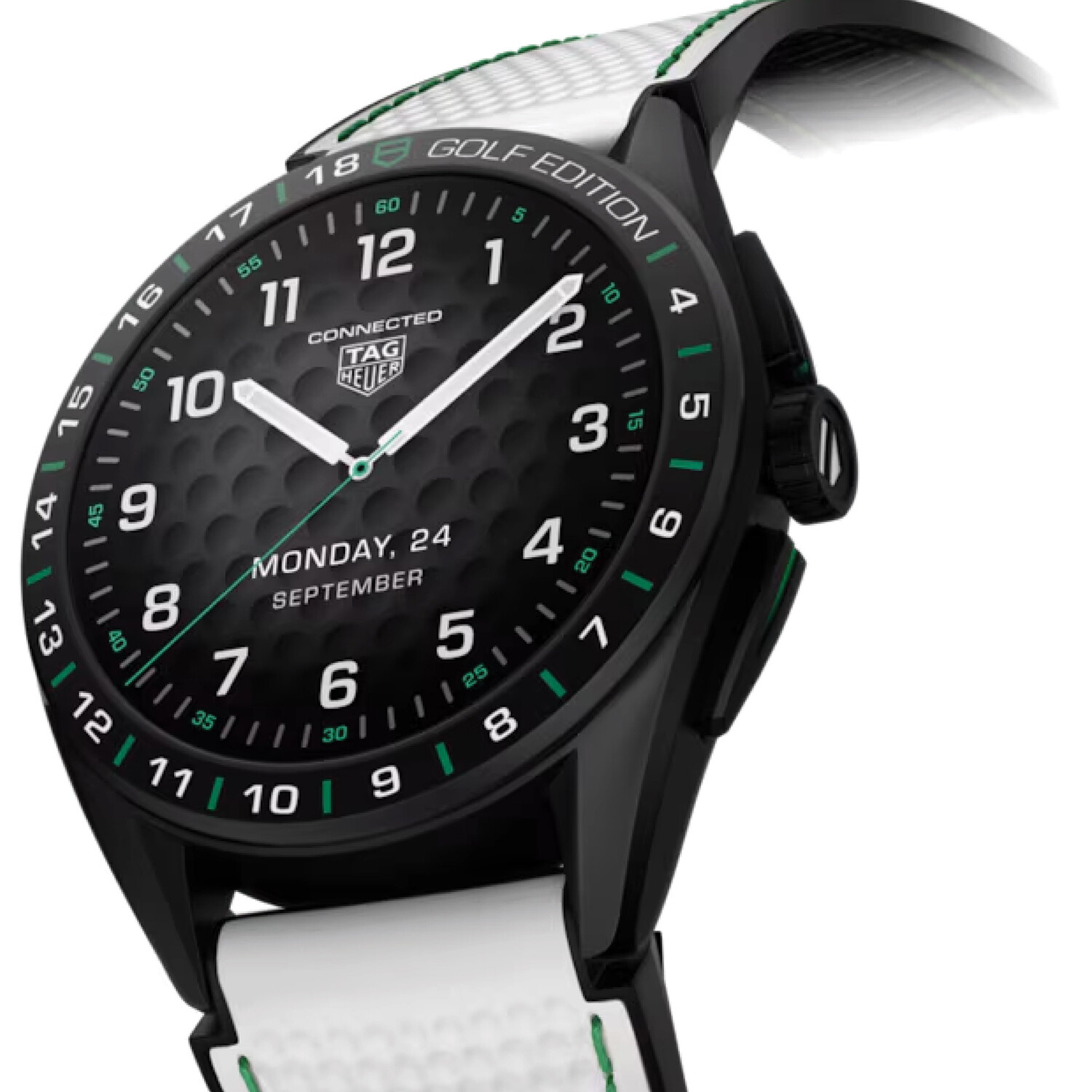The TAG Heuer Connected Calibre E4 Golf Edition is a luxury smartwatch built for serious golfers. Crafted from lightweight titanium with a ceramic bezel, it offers auto shot tracking, club recommendations, and hazard views on 40,000+ courses. Powered by Wear OS, it also delivers all-day battery life, heart-rate monitoring, and sleek everyday style—bringing performance and precision to every round.