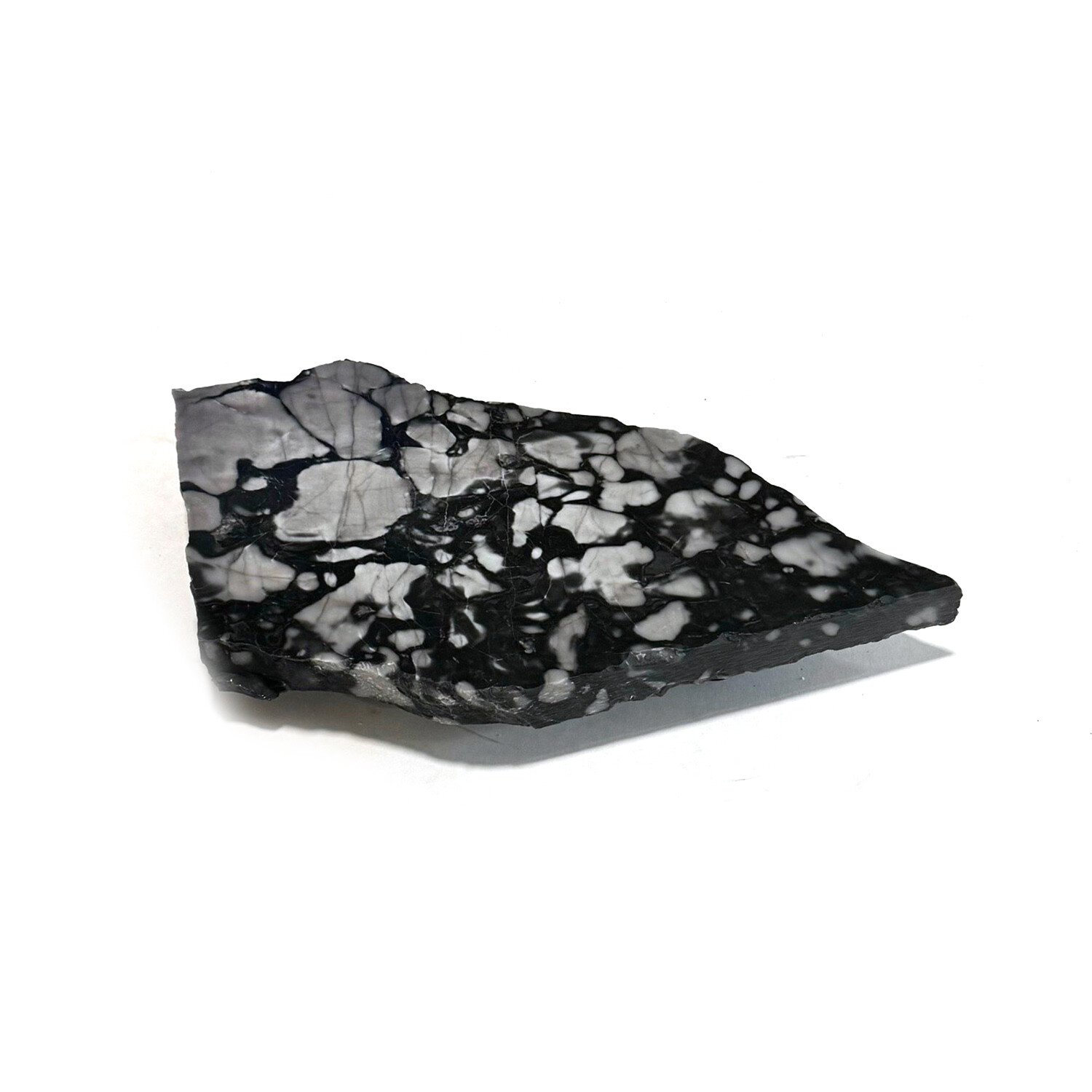 Embrace the unique beauty of a natural live edges (all sides) Orca Black Marble Charcuterie board from Vancouver Island, BC, artisan-designed and exquisitely finished. This distinctive piece features protective rubber feet for stability and durability. The Orca Black marble, known for its excellent qualities for food display, remains cool longer than most materials, perfect for showcasing cheeses, cured meats, fruits, and pickles, and improving workability for pastry chefs.