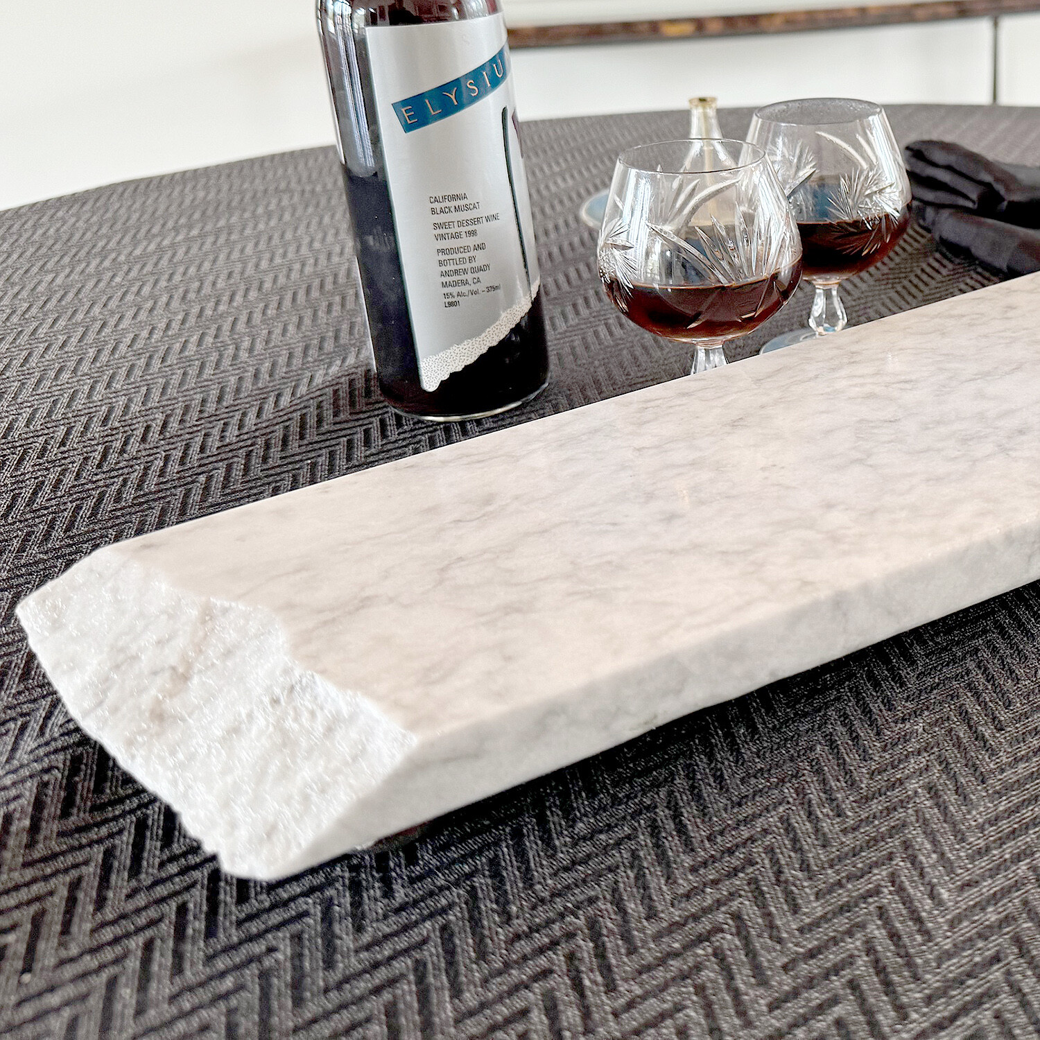 Experience the unique allure of a natural live edges (1) Pacific White Marble Charcuterie board from Vancouver Island, BC, artisan-designed and finished to perfection. This exquisite piece comes with protective rubber feet to ensure stability. Its marble surface, ideal for displaying an array of foods from cheeses to cured meats and fruits, maintains coolness longer than most materials, extending usability for pastry enthusiasts.