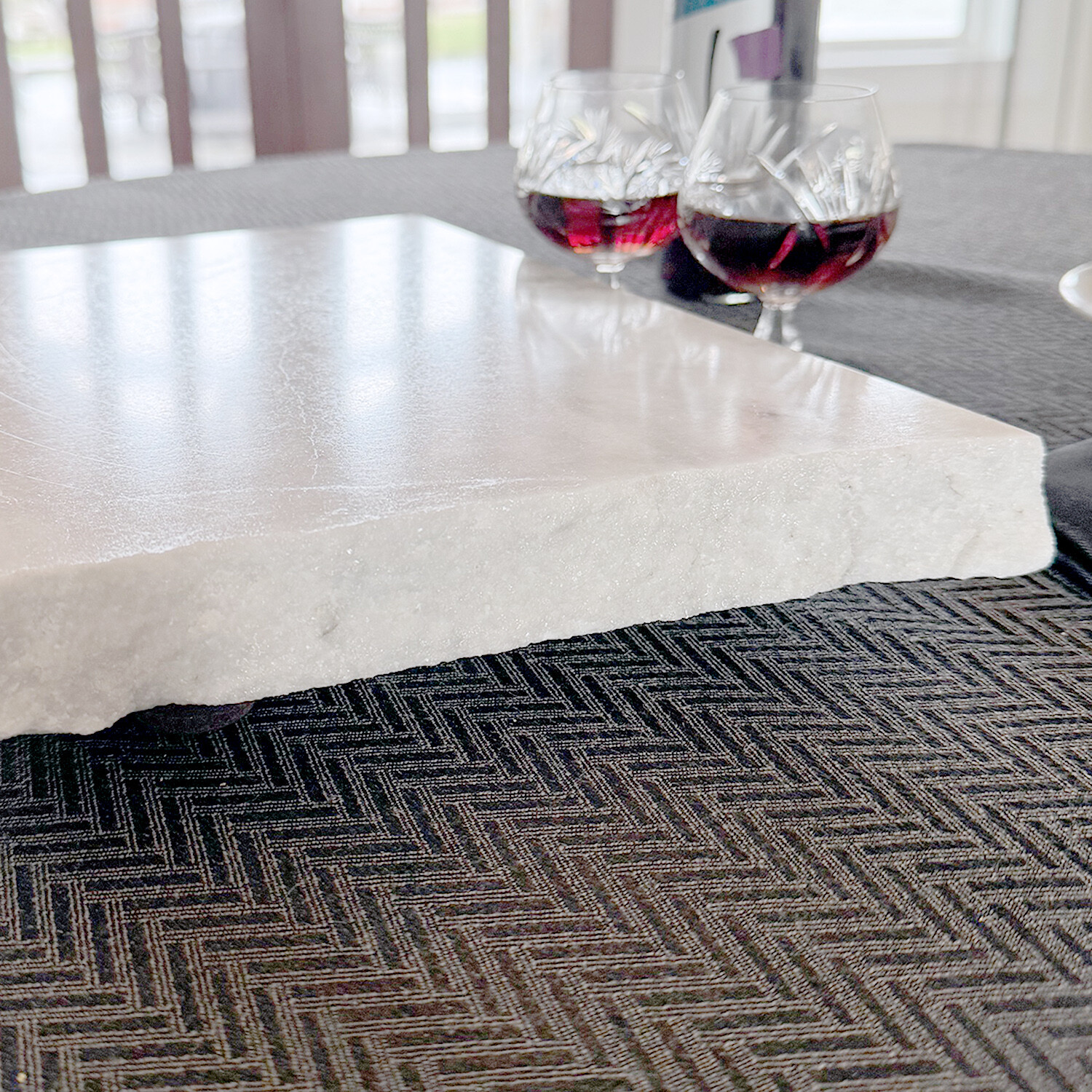 Pacific White Marble Square Charcuterie Board with 1 Live Edge // V2